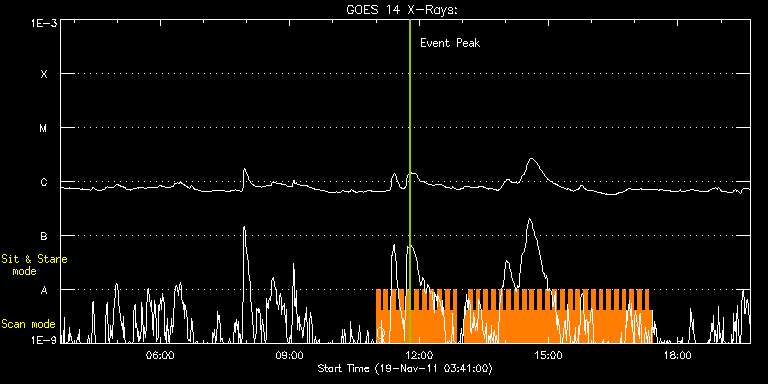 EIS Observation timeline overlay to GOES-Xray curve Code 1" 2" 40" 266" EIS Observations list for this event: STUDY ACRONYM ID DATE OBSERVED DESCRIPTION NOAA# TARGET 0 HH_Flare+AR_180x152 | 24997 | 2011/11/19 11:00:14 | AR observation and Flare hunt | 1354 | Flare TIMELINE ID DATE OBSERVED FITS FILE XCEN (+W/-E) YCEN (+N/-S) DUR ----------------------------------------------------------------------------------------------------------------- 24997 | 2011/11/19 11:00:14.000 | eis_l0_20111119_110014.fits.gz | -850.57 | -295.35 | 5m18s 24997 | 2011/11/19 11:05:35.000 | eis_l0_20111119_110535.fits.gz | -849.95 | -295.51 | 5m18s 24997 | 2011/11/19 11:10:56.000 | eis_l0_20111119_111056.fits.gz | -849.57 | -295.66 | 5m18s 24997 | 2011/11/19 11:16:17.000 | eis_l0_20111119_111617.fits.gz | -849.03 | -295.66 | 5m18s 24997 | 2011/11/19 11:21:38.000 | eis_l0_20111119_112138.fits.gz | -848.64 | -295.59 | 5m17s 24997 | 2011/11/19 11:26:58.000 | eis_l0_20111119_112658.fits.gz | -848.17 | -295.59 | 5m18s 24997 | 2011/11/19 11:32:19.000 | eis_l0_20111119_113219.fits.gz | -847.71 | -295.74 | 5m17s 24997 | 2011/11/19 11:37:39.000 | eis_l0_20111119_113739.fits.gz | -847.25 | -295.74 | 5m19s 24997 | 2011/11/19 11:43:00.000 | eis_l0_20111119_114300.fits.gz | -846.78 | -295.89 | 5m18s 24997 | 2011/11/19 11:48:21.000 | eis_l0_20111119_114821.fits.gz | -846.32 | -295.66 | 5m18s 24997 | 2011/11/19 11:53:41.000 | eis_l0_20111119_115341.fits.gz | -845.93 | -295.89 | 5m18s 24997 | 2011/11/19 11:59:02.000 | eis_l0_20111119_115902.fits.gz | -845.39 | -295.89 | 5m17s 24997 | 2011/11/19 12:04:22.000 | eis_l0_20111119_120422.fits.gz | -845.01 | -295.89 | 5m18s 24997 | 2011/11/19 12:09:42.000 | eis_l0_20111119_120942.fits.gz | -844.54 | -295.89 | 5m19s 24997 | 2011/11/19 12:15:04.000 | eis_l0_20111119_121504.fits.gz | -844.08 | -295.89 | 5m17s 24997 | 2011/11/19 12:20:24.000 | eis_l0_20111119_122024.fits.gz | -843.62 | -295.82 | 5m18s 24997 | 2011/11/19 12:25:45.000 | eis_l0_20111119_122545.fits.gz | -843.23 | -295.82 | 5m18s 24997 | 2011/11/19 12:31:06.000 | eis_l0_20111119_123106.fits.gz | -842.69 | -295.97 | 5m17s 24997 | 2011/11/19 12:36:26.000 | eis_l0_20111119_123626.fits.gz | -842.23 | -295.97 | 5m18s 24997 | 2011/11/19 12:41:47.000 | eis_l0_20111119_124147.fits.gz | -841.76 | -295.97 | 5m18s 24997 | 2011/11/19 12:47:08.000 | eis_l0_20111119_124708.fits.gz | -841.22 | -296.20 | 5m18s 24997 | 2011/11/19 13:03:10.000 | eis_l0_20111119_130310.fits.gz | -839.91 | -296.20 | 5m18s 24997 | 2011/11/19 13:08:30.000 | eis_l0_20111119_130830.fits.gz | -839.52 | -296.13 | 5m19s 24997 | 2011/11/19 13:13:52.000 | eis_l0_20111119_131352.fits.gz | -838.98 | -296.13 | 5m18s 24997 | 2011/11/19 13:19:12.000 | eis_l0_20111119_131912.fits.gz | -838.60 | -296.13 | 5m18s 24997 | 2011/11/19 13:24:33.000 | eis_l0_20111119_132433.fits.gz | -838.06 | -296.28 | 5m18s 24997 | 2011/11/19 13:29:54.000 | eis_l0_20111119_132954.fits.gz | -837.59 | -296.28 | 5m17s 24997 | 2011/11/19 13:35:14.000 | eis_l0_20111119_133514.fits.gz | -837.13 | -296.28 | 5m19s 24997 | 2011/11/19 13:40:35.000 | eis_l0_20111119_134035.fits.gz | -836.66 | -296.36 | 5m18s 24997 | 2011/11/19 13:45:56.000 | eis_l0_20111119_134556.fits.gz | -836.12 | -296.36 | 5m17s 24997 | 2011/11/19 13:51:16.000 | eis_l0_20111119_135116.fits.gz | -835.66 | -296.28 | 5m18s 24997 | 2011/11/19 13:56:37.000 | eis_l0_20111119_135637.fits.gz | -835.20 | -296.36 | 5m18s 24997 | 2011/11/19 14:01:58.000 | eis_l0_20111119_140158.fits.gz | -834.89 | -296.28 | 5m18s 24997 | 2011/11/19 14:07:19.000 | eis_l0_20111119_140719.fits.gz | -834.27 | -296.44 | 5m18s 24997 | 2011/11/19 14:12:40.000 | eis_l0_20111119_141240.fits.gz | -833.88 | -296.51 | 5m18s 24997 | 2011/11/19 14:18:01.000 | eis_l0_20111119_141801.fits.gz | -833.42 | -296.44 | 5m17s 24997 | 2011/11/19 14:23:21.000 | eis_l0_20111119_142321.fits.gz | -832.96 | -296.59 | 5m18s 24997 | 2011/11/19 14:28:42.000 | eis_l0_20111119_142842.fits.gz | -832.42 | -296.67 | 5m17s 24997 | 2011/11/19 14:34:02.000 | eis_l0_20111119_143402.fits.gz | -831.95 | -296.59 | 5m18s 24997 | 2011/11/19 14:39:23.000 | eis_l0_20111119_143923.fits.gz | -831.49 | -296.59 | 5m18s 24997 | 2011/11/19 14:44:43.000 | eis_l0_20111119_144443.fits.gz | -831.03 | -296.59 | 5m18s 24997 | 2011/11/19 14:50:04.000 | eis_l0_20111119_145004.fits.gz | -830.56 | -296.67 | 5m18s 24997 | 2011/11/19 14:55:24.000 | eis_l0_20111119_145524.fits.gz | -830.02 | -296.67 | 5m19s 24997 | 2011/11/19 15:00:46.000 | eis_l0_20111119_150046.fits.gz | -829.56 | -296.59 | 5m17s 24997 | 2011/11/19 15:06:06.000 | eis_l0_20111119_150606.fits.gz | -829.09 | -296.67 | 5m18s 24997 | 2011/11/19 15:11:27.000 | eis_l0_20111119_151127.fits.gz | -828.63 | -296.74 | 5m18s 24997 | 2011/11/19 15:16:48.000 | eis_l0_20111119_151648.fits.gz | -828.24 | -296.67 | 5m18s 24997 | 2011/11/19 15:22:09.000 | eis_l0_20111119_152209.fits.gz | -827.63 | -296.67 | 5m18s 24997 | 2011/11/19 15:27:30.000 | eis_l0_20111119_152730.fits.gz | -827.24 | -296.74 | 5m18s 24997 | 2011/11/19 15:32:50.000 | eis_l0_20111119_153250.fits.gz | -826.78 | -296.90 | 5m19s 24997 | 2011/11/19 15:38:11.000 | eis_l0_20111119_153811.fits.gz | -826.31 | -296.67 | 5m18s 24997 | 2011/11/19 15:43:32.000 | eis_l0_20111119_154332.fits.gz | -825.77 | -296.74 | 5m18s 24997 | 2011/11/19 15:48:53.000 | eis_l0_20111119_154853.fits.gz | -825.31 | -296.90 | 5m18s 24997 | 2011/11/19 15:54:14.000 | eis_l0_20111119_155414.fits.gz | -824.77 | -296.90 | 5m18s 24997 | 2011/11/19 15:59:35.000 | eis_l0_20111119_155935.fits.gz | -824.38 | -296.90 | 5m17s 24997 | 2011/11/19 16:04:55.000 | eis_l0_20111119_160455.fits.gz | -823.84 | -296.98 | 5m19s 24997 | 2011/11/19 16:10:16.000 | eis_l0_20111119_161016.fits.gz | -823.38 | -296.98 | 5m18s 24997 | 2011/11/19 16:15:37.000 | eis_l0_20111119_161537.fits.gz | -822.84 | -296.98 | 5m18s 24997 | 2011/11/19 16:20:58.000 | eis_l0_20111119_162058.fits.gz | -822.45 | -297.05 | 5m18s 24997 | 2011/11/19 16:26:19.000 | eis_l0_20111119_162619.fits.gz | -