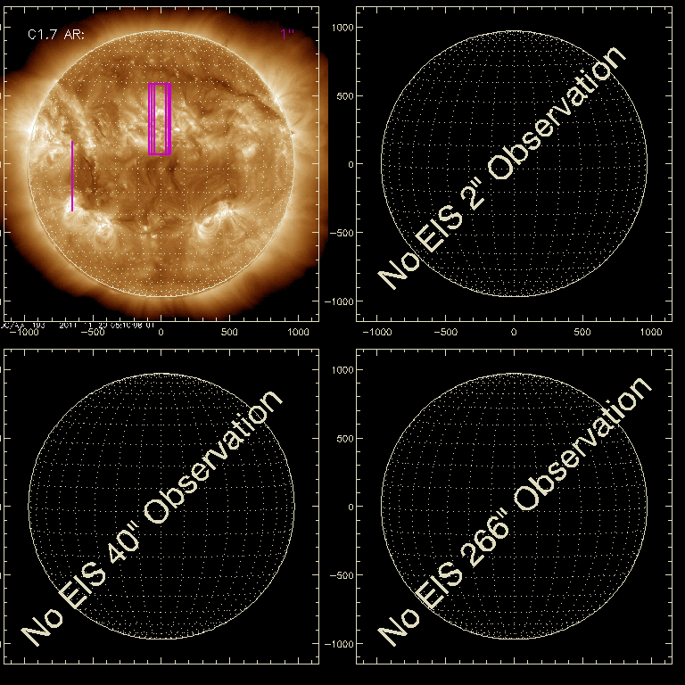 EIS Observation timeline overlay to GOES-Xray curve Code 1" 2" 40" 266" EIS Observations list for this event: STUDY ACRONYM ID DATE OBSERVED DESCRIPTION NOAA# TARGET 0 regcal074 | 24999 | 2011/11/20 05:45:12 | Dark exposures including overscan pixe | 1354 | Engineering TIMELINE ID DATE OBSERVED FITS FILE XCEN (+W/-E) YCEN (+N/-S) DUR ----------------------------------------------------------------------------------------------------------------- 24999 | 2011/11/20 05:45:12.000 | eis_l0_20111120_054512.fits.gz | -646.65 | -94.14 | 3m21s 1 HPW021_VEL_240x512v1 | 25000 | 2011/11/20 06:45:57 | Active Region Studies (ECP) | 1350 | Active Region TIMELINE ID DATE OBSERVED FITS FILE XCEN (+W/-E) YCEN (+N/-S) DUR ----------------------------------------------------------------------------------------------------------------- 25000 | 2011/11/20 06:45:57.000 | eis_l0_20111120_064557.fits.gz | -26.40 | 322.89 | 2h3m49s 25000 | 2011/11/20 08:49:53.000 | eis_l0_20111120_084953.fits.gz | -7.63 | 323.12 | 2h3m49s 25000 | 2011/11/20 10:53:49.000 | eis_l0_20111120_105349.fits.gz | 11.14 | 323.28 | 2h3m49s : Check study information : Download file : View thumbnails For this event, also check for: