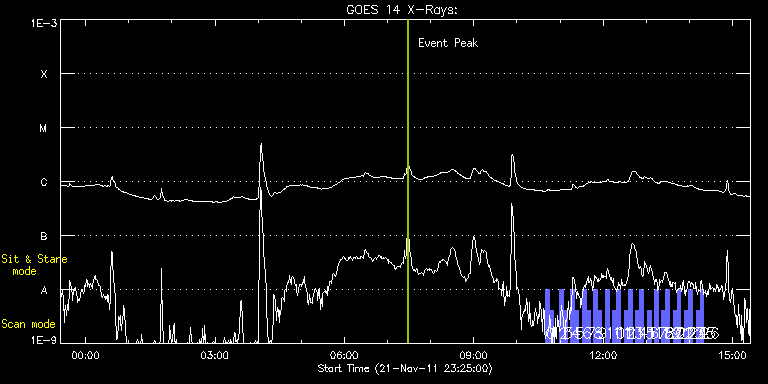EIS Observation timeline overlay to GOES-Xray curve Code 1" 2" 40" 266" EIS Observations list for this event: STUDY ACRONYM ID DATE OBSERVED DESCRIPTION NOAA# TARGET 0 full_sun_slot_scan_1 | 25007 | 2011/11/22 10:40:20 | HOP130 Full sun slot | | Quiet Sun TIMELINE ID DATE OBSERVED FITS FILE XCEN (+W/-E) YCEN (+N/-S) DUR ----------------------------------------------------------------------------------------------------------------- 25007 | 2011/11/22 10:40:20.000 | eis_l0_20111122_104020.fits.gz | 920.72 | 185.50 | 5m27s 1 full_sun_slot_scan_1 | 25008 | 2011/11/22 10:45:53 | HOP130 Full sun slot | 1346 | Quiet Sun TIMELINE ID DATE OBSERVED FITS FILE XCEN (+W/-E) YCEN (+N/-S) DUR ----------------------------------------------------------------------------------------------------------------- 25008 | 2011/11/22 10:45:53.000 | eis_l0_20111122_104553.fits.gz | 920.72 | -286.50 | 5m26s 2 full_sun_slot_scan_1 | 25053 | 2011/11/22 10:59:14 | HOP130 Full sun slot | 1357 | Quiet Sun TIMELINE ID DATE OBSERVED FITS FILE XCEN (+W/-E) YCEN (+N/-S) DUR ----------------------------------------------------------------------------------------------------------------- 25053 | 2011/11/22 10:59:14.000 | eis_l0_20111122_105914.fits.gz | 452.75 | 185.50 | 5m27s 3 full_sun_slot_scan_1 | 25054 | 2011/11/22 11:04:46 | HOP130 Full sun slot | | Quiet Sun TIMELINE ID DATE OBSERVED FITS FILE XCEN (+W/-E) YCEN (+N/-S) DUR ----------------------------------------------------------------------------------------------------------------- 25054 | 2011/11/22 11:04:46.000 | eis_l0_20111122_110446.fits.gz | 452.75 | -286.50 | 5m27s 4 full_sun_slot_scan_1 | 25055 | 2011/11/22 11:15:15 | HOP130 Full sun slot | 1353 | Quiet Sun TIMELINE ID DATE OBSERVED FITS FILE XCEN (+W/-E) YCEN (+N/-S) DUR ----------------------------------------------------------------------------------------------------------------- 25055 | 2011/11/22 11:15:15.000 | eis_l0_20111122_111515.fits.gz | -15.21 | 185.50 | 5m27s 5 full_sun_slot_scan_1 | 25056 | 2011/11/22 11:20:47 | HOP130 Full sun slot | 1352 | Quiet Sun TIMELINE ID DATE OBSERVED FITS FILE XCEN (+W/-E) YCEN (+N/-S) DUR ----------------------------------------------------------------------------------------------------------------- 25056 | 2011/11/22 11:20:47.000 | eis_l0_20111122_112047.fits.gz | -15.21 | -286.58 | 5m26s 6 full_sun_slot_scan_1 | 25057 | 2011/11/22 11:31:14 | HOP130 Full sun slot | 1353 | Quiet Sun TIMELINE ID DATE OBSERVED FITS FILE XCEN (+W/-E) YCEN (+N/-S) DUR ----------------------------------------------------------------------------------------------------------------- 25057 | 2011/11/22 11:31:14.000 | eis_l0_20111122_113114.fits.gz | -483.26 | 185.50 | 5m27s 7 full_sun_slot_scan_1 | 25058 | 2011/11/22 11:36:46 | HOP130 Full sun slot | 1354 | Quiet Sun TIMELINE ID DATE OBSERVED FITS FILE XCEN (+W/-E) YCEN (+N/-S) DUR ----------------------------------------------------------------------------------------------------------------- 25058 | 2011/11/22 11:36:46.000 | eis_l0_20111122_113646.fits.gz | -483.18 | -286.58 | 5m27s 8 full_sun_slot_scan_1 | 25059 | 2011/11/22 11:47:14 | HOP130 Full sun slot | | Quiet Sun TIMELINE ID DATE OBSERVED FITS FILE XCEN (+W/-E) YCEN (+N/-S) DUR ----------------------------------------------------------------------------------------------------------------- 25059 | 2011/11/22 11:47:14.000 | eis_l0_20111122_114714.fits.gz | -9884.69 | -9777.20 | 5m27s 9 full_sun_slot_scan_1 | 25060 | 2011/11/22 11:52:46 | HOP130 Full sun slot | | Quiet Sun TIMELINE ID DATE OBSERVED FITS FILE XCEN (+W/-E) YCEN (+N/-S) DUR ----------------------------------------------------------------------------------------------------------------- 25060 | 2011/11/22 11:52:46.000 | eis_l0_20111122_115246.fits.gz | -9884.69 | -10249.20 | 5m27s 10 full_sun_slot_scan_1 | 25061 | 2011/11/22 12:03:14 | HOP130 Full sun slot | | Quiet Sun TIMELINE ID DATE OBSERVED FITS FILE XCEN (+W/-E) YCEN (+N/-S) DUR ----------------------------------------------------------------------------------------------------------------- 25061 | 2011/11/22 12:03:14.000 | eis_l0_20111122_120314.fits.gz | 799.90 | 655.71 | 5m27s 11 full_sun_slot_scan_1 | 25062 | 2011/11/22 12:13:14 | HOP130 Full sun slot | | Quiet Sun TIMELINE ID DATE OBSERVED FITS FILE XCEN (+W/-E) YCEN (+N/-S) DUR ----------------------------------------------------------------------------------------------------------------- 25062 | 2011/11/22 12:13:14.000 | eis_l0_20111122_121314.fits.gz | 395.82 | 1032.67 | 5m27s 12 full_sun_slot_scan_1 | 25063 | 2011/11/22 12:18:46 | HOP130 Full sun slot | | Quiet Sun TIMELINE ID DATE OBSERVED FITS FILE XCEN (+W/-E) YCEN (+N/-S) DUR ----------------------------------------------------------------------------------------------------------------- 25063 | 2011/11/22 12:18:46.000 | eis_l0_20111122_121846.fits.gz | 395.82 | 560.67 | 5m27s 13 full_sun_slot_scan_1 | 25064 | 2011/11/22 12:29:14 | HOP130 Full sun slot | | Quiet Sun TIMELINE ID DATE OBSERVED FITS FILE XCEN (+W/-E) YCEN (+N/-S) DUR ----------------------------------------------------------------------------------------------------------------- 25064 | 2011/11/22 12:29:14.000 | eis_l0_20111122_122914.fits.gz | -15.29 | 1126.45 | 5m27s 14 full_sun_slot_scan_1 | 25065 | 2011/11/22 12:34:46 | HOP130 Full sun slot | | Quiet Sun TIMELINE ID DATE OBSERVED FITS FILE XCEN (+W/-E) YCEN (+N/-S) DUR ----------------------------------------------------------------------------------------------------------------- 25065 | 2011/11/22 12:34:46.000 | eis_l0_20111122_123446.fits.gz | -15.29 | 654.61 | 5m27s 15 full_sun_slot_scan_1 | 25066 | 2011/11/22 12:45:14 | HOP130 Full sun slot | | Quiet Sun TIMELINE ID DATE OBSERVED FITS FILE XCEN (+W/-E) YCEN (+N/-S) DUR ----------------------------------------------------------------------------------------------------------------- 25066 | 2011/11/22 12:45:14.000 | eis_l0_20111122_124514.fits.gz | -426.15 | 1032.44 | 5m27s 16 