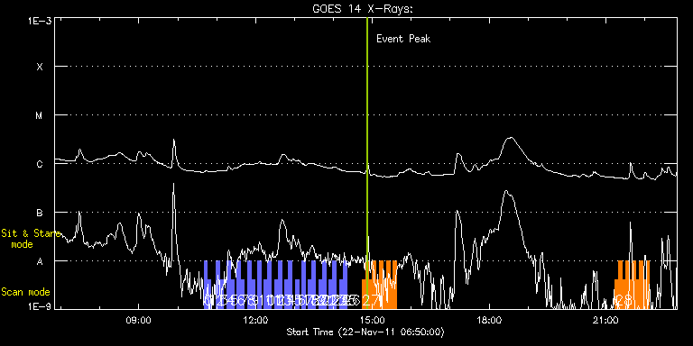 EIS Observation timeline overlay to GOES-Xray curve Code 1" 2" 40" 266" EIS Observations list for this event: STUDY ACRONYM ID DATE OBSERVED DESCRIPTION NOAA# TARGET 0 full_sun_slot_scan_1 | 25007 | 2011/11/22 10:40:20 | HOP130 Full sun slot | | Quiet Sun TIMELINE ID DATE OBSERVED FITS FILE XCEN (+W/-E) YCEN (+N/-S) DUR ----------------------------------------------------------------------------------------------------------------- 25007 | 2011/11/22 10:40:20.000 | eis_l0_20111122_104020.fits.gz | 920.72 | 185.50 | 5m27s 1 full_sun_slot_scan_1 | 25008 | 2011/11/22 10:45:53 | HOP130 Full sun slot | 1346 | Quiet Sun TIMELINE ID DATE OBSERVED FITS FILE XCEN (+W/-E) YCEN (+N/-S) DUR ----------------------------------------------------------------------------------------------------------------- 25008 | 2011/11/22 10:45:53.000 | eis_l0_20111122_104553.fits.gz | 920.72 | -286.50 | 5m26s 2 full_sun_slot_scan_1 | 25053 | 2011/11/22 10:59:14 | HOP130 Full sun slot | 1357 | Quiet Sun TIMELINE ID DATE OBSERVED FITS FILE XCEN (+W/-E) YCEN (+N/-S) DUR ----------------------------------------------------------------------------------------------------------------- 25053 | 2011/11/22 10:59:14.000 | eis_l0_20111122_105914.fits.gz | 452.75 | 185.50 | 5m27s 3 full_sun_slot_scan_1 | 25054 | 2011/11/22 11:04:46 | HOP130 Full sun slot | | Quiet Sun TIMELINE ID DATE OBSERVED FITS FILE XCEN (+W/-E) YCEN (+N/-S) DUR ----------------------------------------------------------------------------------------------------------------- 25054 | 2011/11/22 11:04:46.000 | eis_l0_20111122_110446.fits.gz | 452.75 | -286.50 | 5m27s 4 full_sun_slot_scan_1 | 25055 | 2011/11/22 11:15:15 | HOP130 Full sun slot | 1353 | Quiet Sun TIMELINE ID DATE OBSERVED FITS FILE XCEN (+W/-E) YCEN (+N/-S) DUR ----------------------------------------------------------------------------------------------------------------- 25055 | 2011/11/22 11:15:15.000 | eis_l0_20111122_111515.fits.gz | -15.21 | 185.50 | 5m27s 5 full_sun_slot_scan_1 | 25056 | 2011/11/22 11:20:47 | HOP130 Full sun slot | 1352 | Quiet Sun TIMELINE ID DATE OBSERVED FITS FILE XCEN (+W/-E) YCEN (+N/-S) DUR ----------------------------------------------------------------------------------------------------------------- 25056 | 2011/11/22 11:20:47.000 | eis_l0_20111122_112047.fits.gz | -15.21 | -286.58 | 5m26s 6 full_sun_slot_scan_1 | 25057 | 2011/11/22 11:31:14 | HOP130 Full sun slot | 1353 | Quiet Sun TIMELINE ID DATE OBSERVED FITS FILE XCEN (+W/-E) YCEN (+N/-S) DUR ----------------------------------------------------------------------------------------------------------------- 25057 | 2011/11/22 11:31:14.000 | eis_l0_20111122_113114.fits.gz | -483.26 | 185.50 | 5m27s 7 full_sun_slot_scan_1 | 25058 | 2011/11/22 11:36:46 | HOP130 Full sun slot | 1354 | Quiet Sun TIMELINE ID DATE OBSERVED FITS FILE XCEN (+W/-E) YCEN (+N/-S) DUR ----------------------------------------------------------------------------------------------------------------- 25058 | 2011/11/22 11:36:46.000 | eis_l0_20111122_113646.fits.gz | -483.18 | -286.58 | 5m27s 8 full_sun_slot_scan_1 | 25059 | 2011/11/22 11:47:14 | HOP130 Full sun slot | | Quiet Sun TIMELINE ID DATE OBSERVED FITS FILE XCEN (+W/-E) YCEN (+N/-S) DUR ----------------------------------------------------------------------------------------------------------------- 25059 | 2011/11/22 11:47:14.000 | eis_l0_20111122_114714.fits.gz | -9884.69 | -9777.20 | 5m27s 9 full_sun_slot_scan_1 | 25060 | 2011/11/22 11:52:46 | HOP130 Full sun slot | | Quiet Sun TIMELINE ID DATE OBSERVED FITS FILE XCEN (+W/-E) YCEN (+N/-S) DUR ----------------------------------------------------------------------------------------------------------------- 25060 | 2011/11/22 11:52:46.000 | eis_l0_20111122_115246.fits.gz | -9884.69 | -10249.20 | 5m27s 10 full_sun_slot_scan_1 | 25061 | 2011/11/22 12:03:14 | HOP130 Full sun slot | | Quiet Sun TIMELINE ID DATE OBSERVED FITS FILE XCEN (+W/-E) YCEN (+N/-S) DUR ----------------------------------------------------------------------------------------------------------------- 25061 | 2011/11/22 12:03:14.000 | eis_l0_20111122_120314.fits.gz | 799.90 | 655.71 | 5m27s 11 full_sun_slot_scan_1 | 25062 | 2011/11/22 12:13:14 | HOP130 Full sun slot | | Quiet Sun TIMELINE ID DATE OBSERVED FITS FILE XCEN (+W/-E) YCEN (+N/-S) DUR ----------------------------------------------------------------------------------------------------------------- 25062 | 2011/11/22 12:13:14.000 | eis_l0_20111122_121314.fits.gz | 395.82 | 1032.67 | 5m27s 12 full_sun_slot_scan_1 | 25063 | 2011/11/22 12:18:46 | HOP130 Full sun slot | | Quiet Sun TIMELINE ID DATE OBSERVED FITS FILE XCEN (+W/-E) YCEN (+N/-S) DUR ----------------------------------------------------------------------------------------------------------------- 25063 | 2011/11/22 12:18:46.000 | eis_l0_20111122_121846.fits.gz | 395.82 | 560.67 | 5m27s 13 full_sun_slot_scan_1 | 25064 | 2011/11/22 12:29:14 | HOP130 Full sun slot | | Quiet Sun TIMELINE ID DATE OBSERVED FITS FILE XCEN (+W/-E) YCEN (+N/-S) DUR ----------------------------------------------------------------------------------------------------------------- 25064 | 2011/11/22 12:29:14.000 | eis_l0_20111122_122914.fits.gz | -15.29 | 1126.45 | 5m27s 14 full_sun_slot_scan_1 | 25065 | 2011/11/22 12:34:46 | HOP130 Full sun slot | | Quiet Sun TIMELINE ID DATE OBSERVED FITS FILE XCEN (+W/-E) YCEN (+N/-S) DUR ----------------------------------------------------------------------------------------------------------------- 25065 | 2011/11/22 12:34:46.000 | eis_l0_20111122_123446.fits.gz | -15.29 | 654.61 | 5m27s 15 full_sun_slot_scan_1 | 25066 | 2011/11/22 12:45:14 | HOP130 Full sun slot | | Quiet Sun TIMELINE ID DATE OBSERVED FITS FILE XCEN (+W/-E) YCEN (+N/-S) DUR ----------------------------------------------------------------------------------------------------------------- 25066 | 2011/11/22 12:45:14.000 | eis_l0_20111122_124514.fits.gz | -426.15 | 1032.44 | 5m27s 16 