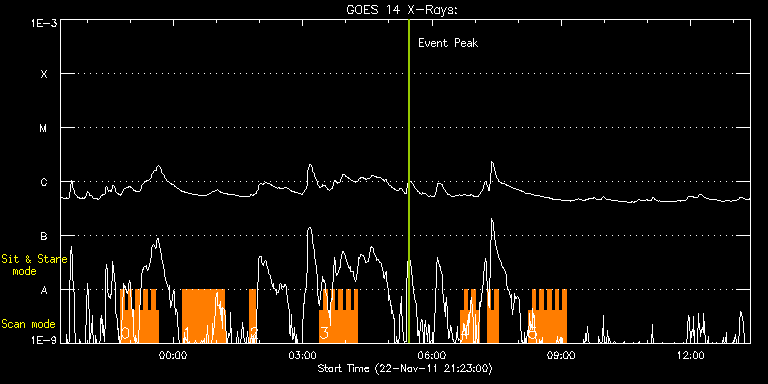 EIS Observation timeline overlay to GOES-Xray curve Code 1" 2" 40" 266" EIS Observations list for this event: STUDY ACRONYM ID DATE OBSERVED DESCRIPTION NOAA# TARGET 0 HH_Flare+AR_180x152 | 25088 | 2011/11/22 22:46:28 | Flare Hunting and AR study | 1354 | Flare TIMELINE ID DATE OBSERVED FITS FILE XCEN (+W/-E) YCEN (+N/-S) DUR ----------------------------------------------------------------------------------------------------------------- 25088 | 2011/11/22 22:46:28.000 | eis_l0_20111122_224628.fits.gz | -154.32 | -306.17 | 5m19s 25088 | 2011/11/22 22:51:49.000 | eis_l0_20111122_225149.fits.gz | -153.47 | -306.09 | 5m18s 25088 | 2011/11/22 22:57:10.000 | eis_l0_20111122_225710.fits.gz | -152.62 | -306.17 | 5m18s 25088 | 2011/11/22 23:02:31.000 | eis_l0_20111122_230231.fits.gz | -151.93 | -306.17 | 5m18s 25088 | 2011/11/22 23:07:51.000 | eis_l0_20111122_230751.fits.gz | -151.00 | -306.32 | 5m18s 25088 | 2011/11/22 23:13:12.000 | eis_l0_20111122_231312.fits.gz | -150.30 | -306.09 | 5m17s 25088 | 2011/11/22 23:18:32.000 | eis_l0_20111122_231832.fits.gz | -149.46 | -306.17 | 5m18s 25088 | 2011/11/22 23:23:52.000 | eis_l0_20111122_232352.fits.gz | -148.76 | -306.25 | 5m18s 25088 | 2011/11/22 23:29:13.000 | eis_l0_20111122_232913.fits.gz | -147.83 | -306.09 | 5m17s 25088 | 2011/11/22 23:34:33.000 | eis_l0_20111122_233433.fits.gz | -147.14 | -306.17 | 5m18s 1 DRW_Alf_01 | 25078 | 2011/11/23 00:12:44 | HOP128 AR | 1352 | Active Region TIMELINE ID DATE OBSERVED FITS FILE XCEN (+W/-E) YCEN (+N/-S) DUR ----------------------------------------------------------------------------------------------------------------- 25078 | 2011/11/23 00:12:44.000 | eis_l0_20111123_001244.fits.gz | 188.24 | -454.72 | 1m8s 25078 | 2011/11/23 00:13:55.000 | eis_l0_20111123_001355.fits.gz | 188.47 | -454.56 | 1m8s 25078 | 2011/11/23 00:15:06.000 | eis_l0_20111123_001506.fits.gz | 188.63 | -454.56 | 1m8s 25078 | 2011/11/23 00:16:17.000 | eis_l0_20111123_001617.fits.gz | 188.78 | -454.72 | 1m9s 25078 | 2011/11/23 00:17:28.000 | eis_l0_20111123_001728.fits.gz | 188.94 | -454.64 | 1m9s 25078 | 2011/11/23 00:18:40.000 | eis_l0_20111123_001840.fits.gz | 189.09 | -454.64 | 1m8s 25078 | 2011/11/23 00:19:51.000 | eis_l0_20111123_001951.fits.gz | 189.25 | -454.56 | 1m8s 25078 | 2011/11/23 00:21:02.000 | eis_l0_20111123_002102.fits.gz | 189.32 | -454.56 | 1m8s 25078 | 2011/11/23 00:22:13.000 | eis_l0_20111123_002213.fits.gz | 189.48 | -454.64 | 1m8s 25078 | 2011/11/23 00:23:24.000 | eis_l0_20111123_002324.fits.gz | 189.71 | -454.64 | 1m8s 25078 | 2011/11/23 00:24:35.000 | eis_l0_20111123_002435.fits.gz | 189.87 | -454.64 | 1m9s 25078 | 2011/11/23 00:25:46.000 | eis_l0_20111123_002546.fits.gz | 190.02 | -454.56 | 1m9s 25078 | 2011/11/23 00:26:57.000 | eis_l0_20111123_002657.fits.gz | 190.17 | -454.56 | 1m9s 25078 | 2011/11/23 00:28:09.000 | eis_l0_20111123_002809.fits.gz | 190.40 | -454.72 | 1m8s 25078 | 2011/11/23 00:29:20.000 | eis_l0_20111123_002920.fits.gz | 190.48 | -454.72 | 1m9s 25078 | 2011/11/23 00:30:31.000 | eis_l0_20111123_003031.fits.gz | 190.71 | -454.64 | 1m9s 25078 | 2011/11/23 00:31:43.000 | eis_l0_20111123_003143.fits.gz | 190.79 | -454.72 | 1m8s 25078 | 2011/11/23 00:32:54.000 | eis_l0_20111123_003254.fits.gz | 190.95 | -454.64 | 1m8s 25078 | 2011/11/23 00:34:05.000 | eis_l0_20111123_003405.fits.gz | 191.02 | -454.56 | 1m8s 25078 | 2011/11/23 00:35:16.000 | eis_l0_20111123_003516.fits.gz | 191.26 | -454.64 | 1m9s 25078 | 2011/11/23 00:36:28.000 | eis_l0_20111123_003628.fits.gz | 191.49 | -454.56 | 1m8s 25078 | 2011/11/23 00:37:39.000 | eis_l0_20111123_003739.fits.gz | 191.64 | -454.64 | 1m8s 25078 | 2011/11/23 00:38:50.000 | eis_l0_20111123_003850.fits.gz | 191.80 | -454.64 | 1m9s 25078 | 2011/11/23 00:40:01.000 | eis_l0_20111123_004001.fits.gz | 191.95 | -454.64 | 1m9s 25078 | 2011/11/23 00:41:13.000 | eis_l0_20111123_004113.fits.gz | 192.10 | -454.64 | 1m8s 25078 | 2011/11/23 00:42:24.000 | eis_l0_20111123_004224.fits.gz | 192.26 | -454.56 | 1m8s 25078 | 2011/11/23 00:43:35.000 | eis_l0_20111123_004335.fits.gz | 192.34 | -454.72 | 1m8s 25078 | 2011/11/23 00:44:46.000 | eis_l0_20111123_004446.fits.gz | 192.57 | -454.72 | 1m9s 25078 | 2011/11/23 00:45:57.000 | eis_l0_20111123_004557.fits.gz | 192.65 | -454.64 | 1m9s 25078 | 2011/11/23 00:47:09.000 | eis_l0_20111123_004709.fits.gz | 192.88 | -454.56 | 1m8s 25078 | 2011/11/23 00:48:20.000 | eis_l0_20111123_004820.fits.gz | 192.96 | -454.64 | 1m8s 25078 | 2011/11/23 00:49:31.000 | eis_l0_20111123_004931.fits.gz | 193.19 | -454.64 | 1m9s 25078 | 2011/11/23 00:50:42.000 | eis_l0_20111123_005042.fits.gz | 193.34 | -454.64 | 1m9s 25078 | 2011/11/23 00:51:54.000 | eis_l0_20111123_005154.fits.gz | 193.49 | -454.56 | 1m8s 25078 | 2011/11/23 00:53:05.000 | eis_l0_20111123_005305.fits.gz | 193.57 | -454.64 | 1m8s 25078 | 2011/11/23 00:54:16.000 | eis_l0_20111123_005416.fits.gz | 193.80 | -454.48 | 1m8s 25078 | 2011/11/23 00:55:27.000 | eis_l0_20111123_005527.fits.gz | 193.96 | -454.48 | 1m8s 25078 | 2011/11/23 00:56:38.000 | eis_l0_20111123_005638.fits.gz | 194.19 | -454.48 | 1m8s 25078 | 2011/11/23 00:57:49.000 | eis_l0_20111123_005749.fits.gz | 194.35 | -454.64 | 1m9s 25078 | 2011/11/23 00:59:00.000 | eis_l0_20111123_005900.fits.gz | 194.50 | -454.56 | 1m9s 25078 | 2011/11/23 01:00:12.000 | eis_l0_20111123_010012.fits.gz | 194.65 | -454.56 | 1m8s 25078 | 2011/11/23 01:01:23.000 | eis_l0_20111123_010123.fits.gz | 194.81 | -454.64 | 1m8s 25078 | 2011/11/23 01:02:34.000 | eis_l0_20111123_010234.fits.gz | 194.96 | -454.64 | 1m9s 25078 | 2011/11/23 01:03:45.000 | eis_l0_20111123_010345.fits.gz | 195.12 | -454.64 | 1m9s 25078 | 2011/11/23 01:04:56.000 | eis_l0_20111123_010456.fits.gz | 195.27 | -454.64 | 1m9s 25078 | 2011/11/23 01:06:08.000 | eis_l0_20111123_010608.fits.gz | 195.50 | -454.56 | 1m8s 25078 | 2011/11/23 01:07:19.000 | eis_l0_20111123_010719.fits.gz | 195.58 | -454.56 | 1m9s 25078 | 2011/11/23 01:08:30.000 | eis_l0_20111123_010830.fits.gz | 195.74 | -454.48 | 1m9s 25