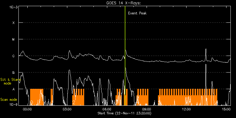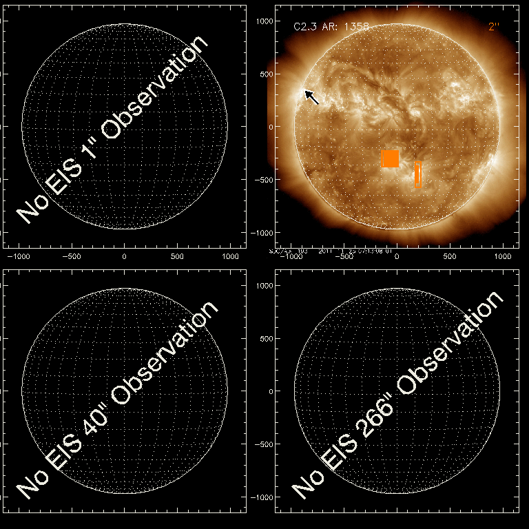 EIS Observation timeline overlay to GOES-Xray curve Code 1" 2" 40" 266" EIS Observations list for this event: STUDY ACRONYM ID DATE OBSERVED DESCRIPTION NOAA# TARGET 0 DRW_Alf_01 | 25078 | 2011/11/23 00:12:44 | HOP128 AR | 1352 | Active Region TIMELINE ID DATE OBSERVED FITS FILE XCEN (+W/-E) YCEN (+N/-S) DUR ----------------------------------------------------------------------------------------------------------------- 25078 | 2011/11/23 00:12:44.000 | eis_l0_20111123_001244.fits.gz | 188.24 | -454.72 | 1m8s 25078 | 2011/11/23 00:13:55.000 | eis_l0_20111123_001355.fits.gz | 188.47 | -454.56 | 1m8s 25078 | 2011/11/23 00:15:06.000 | eis_l0_20111123_001506.fits.gz | 188.63 | -454.56 | 1m8s 25078 | 2011/11/23 00:16:17.000 | eis_l0_20111123_001617.fits.gz | 188.78 | -454.72 | 1m9s 25078 | 2011/11/23 00:17:28.000 | eis_l0_20111123_001728.fits.gz | 188.94 | -454.64 | 1m9s 25078 | 2011/11/23 00:18:40.000 | eis_l0_20111123_001840.fits.gz | 189.09 | -454.64 | 1m8s 25078 | 2011/11/23 00:19:51.000 | eis_l0_20111123_001951.fits.gz | 189.25 | -454.56 | 1m8s 25078 | 2011/11/23 00:21:02.000 | eis_l0_20111123_002102.fits.gz | 189.32 | -454.56 | 1m8s 25078 | 2011/11/23 00:22:13.000 | eis_l0_20111123_002213.fits.gz | 189.48 | -454.64 | 1m8s 25078 | 2011/11/23 00:23:24.000 | eis_l0_20111123_002324.fits.gz | 189.71 | -454.64 | 1m8s 25078 | 2011/11/23 00:24:35.000 | eis_l0_20111123_002435.fits.gz | 189.87 | -454.64 | 1m9s 25078 | 2011/11/23 00:25:46.000 | eis_l0_20111123_002546.fits.gz | 190.02 | -454.56 | 1m9s 25078 | 2011/11/23 00:26:57.000 | eis_l0_20111123_002657.fits.gz | 190.17 | -454.56 | 1m9s 25078 | 2011/11/23 00:28:09.000 | eis_l0_20111123_002809.fits.gz | 190.40 | -454.72 | 1m8s 25078 | 2011/11/23 00:29:20.000 | eis_l0_20111123_002920.fits.gz | 190.48 | -454.72 | 1m9s 25078 | 2011/11/23 00:30:31.000 | eis_l0_20111123_003031.fits.gz | 190.71 | -454.64 | 1m9s 25078 | 2011/11/23 00:31:43.000 | eis_l0_20111123_003143.fits.gz | 190.79 | -454.72 | 1m8s 25078 | 2011/11/23 00:32:54.000 | eis_l0_20111123_003254.fits.gz | 190.95 | -454.64 | 1m8s 25078 | 2011/11/23 00:34:05.000 | eis_l0_20111123_003405.fits.gz | 191.02 | -454.56 | 1m8s 25078 | 2011/11/23 00:35:16.000 | eis_l0_20111123_003516.fits.gz | 191.26 | -454.64 | 1m9s 25078 | 2011/11/23 00:36:28.000 | eis_l0_20111123_003628.fits.gz | 191.49 | -454.56 | 1m8s 25078 | 2011/11/23 00:37:39.000 | eis_l0_20111123_003739.fits.gz | 191.64 | -454.64 | 1m8s 25078 | 2011/11/23 00:38:50.000 | eis_l0_20111123_003850.fits.gz | 191.80 | -454.64 | 1m9s 25078 | 2011/11/23 00:40:01.000 | eis_l0_20111123_004001.fits.gz | 191.95 | -454.64 | 1m9s 25078 | 2011/11/23 00:41:13.000 | eis_l0_20111123_004113.fits.gz | 192.10 | -454.64 | 1m8s 25078 | 2011/11/23 00:42:24.000 | eis_l0_20111123_004224.fits.gz | 192.26 | -454.56 | 1m8s 25078 | 2011/11/23 00:43:35.000 | eis_l0_20111123_004335.fits.gz | 192.34 | -454.72 | 1m8s 25078 | 2011/11/23 00:44:46.000 | eis_l0_20111123_004446.fits.gz | 192.57 | -454.72 | 1m9s 25078 | 2011/11/23 00:45:57.000 | eis_l0_20111123_004557.fits.gz | 192.65 | -454.64 | 1m9s 25078 | 2011/11/23 00:47:09.000 | eis_l0_20111123_004709.fits.gz | 192.88 | -454.56 | 1m8s 25078 | 2011/11/23 00:48:20.000 | eis_l0_20111123_004820.fits.gz | 192.96 | -454.64 | 1m8s 25078 | 2011/11/23 00:49:31.000 | eis_l0_20111123_004931.fits.gz | 193.19 | -454.64 | 1m9s 25078 | 2011/11/23 00:50:42.000 | eis_l0_20111123_005042.fits.gz | 193.34 | -454.64 | 1m9s 25078 | 2011/11/23 00:51:54.000 | eis_l0_20111123_005154.fits.gz | 193.49 | -454.56 | 1m8s 25078 | 2011/11/23 00:53:05.000 | eis_l0_20111123_005305.fits.gz | 193.57 | -454.64 | 1m8s 25078 | 2011/11/23 00:54:16.000 | eis_l0_20111123_005416.fits.gz | 193.80 | -454.48 | 1m8s 25078 | 2011/11/23 00:55:27.000 | eis_l0_20111123_005527.fits.gz | 193.96 | -454.48 | 1m8s 25078 | 2011/11/23 00:56:38.000 | eis_l0_20111123_005638.fits.gz | 194.19 | -454.48 | 1m8s 25078 | 2011/11/23 00:57:49.000 | eis_l0_20111123_005749.fits.gz | 194.35 | -454.64 | 1m9s 25078 | 2011/11/23 00:59:00.000 | eis_l0_20111123_005900.fits.gz | 194.50 | -454.56 | 1m9s 25078 | 2011/11/23 01:00:12.000 | eis_l0_20111123_010012.fits.gz | 194.65 | -454.56 | 1m8s 25078 | 2011/11/23 01:01:23.000 | eis_l0_20111123_010123.fits.gz | 194.81 | -454.64 | 1m8s 25078 | 2011/11/23 01:02:34.000 | eis_l0_20111123_010234.fits.gz | 194.96 | -454.64 | 1m9s 25078 | 2011/11/23 01:03:45.000 | eis_l0_20111123_010345.fits.gz | 195.12 | -454.64 | 1m9s 25078 | 2011/11/23 01:04:56.000 | eis_l0_20111123_010456.fits.gz | 195.27 | -454.64 | 1m9s 25078 | 2011/11/23 01:06:08.000 | eis_l0_20111123_010608.fits.gz | 195.50 | -454.56 | 1m8s 25078 | 2011/11/23 01:07:19.000 | eis_l0_20111123_010719.fits.gz | 195.58 | -454.56 | 1m9s 25078 | 2011/11/23 01:08:30.000 | eis_l0_20111123_010830.fits.gz | 195.74 | -454.48 | 1m9s 25078 | 2011/11/23 01:09:42.000 | eis_l0_20111123_010942.fits.gz | 195.81 | -454.56 | 1m8s 25078 | 2011/11/23 01:10:53.000 | eis_l0_20111123_011053.fits.gz | 196.04 | -454.64 | 1m8s 1 SK_AR2_50x240p | 25079 | 2011/11/23 01:46:13 | HOP128 AR | 1352 | Active Region TIMELINE ID DATE OBSERVED FITS FILE XCEN (+W/-E) YCEN (+N/-S) DUR ----------------------------------------------------------------------------------------------------------------- 25079 | 2011/11/23 01:46:13.000 | eis_l0_20111123_014613.fits.gz | 200.76 | -454.41 | 1m31s 25079 | 2011/11/23 01:47:47.000 | eis_l0_20111123_014747.fits.gz | 200.91 | -454.33 | 1m30s 25079 | 2011/11/23 01:49:20.000 | eis_l0_20111123_014920.fits.gz | 201.14 | -454.41 | 1m30s 25079 | 2011/11/23 01:50:53.000 | eis_l0_20111123_015053.fits.gz | 201.45 | -454.48 | 1m31s 25079 | 2011/11/23 01:52:27.000 | eis_l0_20111123_015227.fits.gz | 201.53 | -454.33 | 1m30s 2 HH_Flare+AR_180x152 | 25089 | 2011/11/23 03:23:27 | Flare Hunting and AR study | 1354 | Flare TIMELINE ID DATE OBSERVED FITS FILE XCEN (+W/-E) YCEN (+N/-S) DUR ----------------------------------------------------------------------------------------------------------------- 25089 | 2011/11/23 03:23:27.