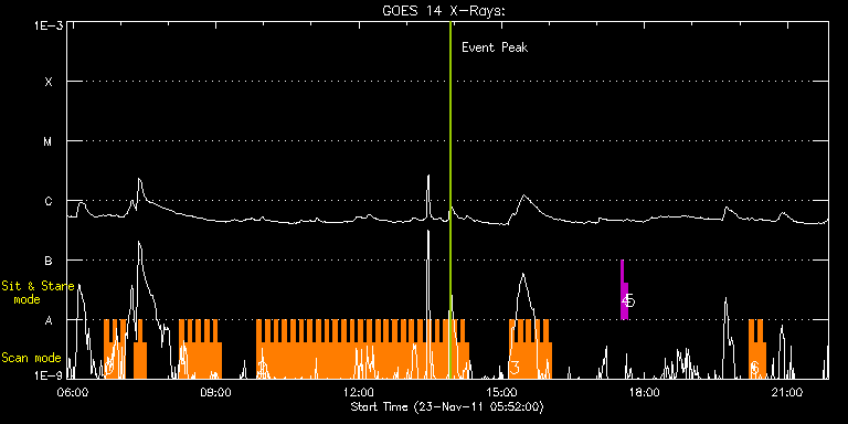 EIS Observation timeline overlay to GOES-Xray curve Code 1" 2" 40" 266" EIS Observations list for this event: STUDY ACRONYM ID DATE OBSERVED DESCRIPTION NOAA# TARGET 0 HH_Flare+AR_180x152 | 25090 | 2011/11/23 06:39:10 | Flare Hunting and AR study | 1354 | Flare TIMELINE ID DATE OBSERVED FITS FILE XCEN (+W/-E) YCEN (+N/-S) DUR ----------------------------------------------------------------------------------------------------------------- 25090 | 2011/11/23 06:39:10.000 | eis_l0_20111123_063910.fits.gz | -84.10 | -305.86 | 5m18s 25090 | 2011/11/23 06:44:31.000 | eis_l0_20111123_064431.fits.gz | -83.33 | -305.86 | 5m17s 25090 | 2011/11/23 06:49:51.000 | eis_l0_20111123_064951.fits.gz | -82.56 | -305.78 | 5m17s 25090 | 2011/11/23 06:55:11.000 | eis_l0_20111123_065511.fits.gz | -81.79 | -305.94 | 5m18s 25090 | 2011/11/23 07:00:32.000 | eis_l0_20111123_070032.fits.gz | -80.94 | -305.86 | 5m18s 25090 | 2011/11/23 07:16:34.000 | eis_l0_20111123_071634.fits.gz | -78.54 | -305.94 | 5m17s 25090 | 2011/11/23 07:21:54.000 | eis_l0_20111123_072154.fits.gz | -77.77 | -306.09 | 5m18s 25090 | 2011/11/23 07:27:15.000 | eis_l0_20111123_072715.fits.gz | -77.00 | -305.78 | 5m18s 1 HH_Flare+AR_180x152 | 25091 | 2011/11/23 08:13:43 | Flare Hunting and AR study | 1354 | Flare TIMELINE ID DATE OBSERVED FITS FILE XCEN (+W/-E) YCEN (+N/-S) DUR ----------------------------------------------------------------------------------------------------------------- 25091 | 2011/11/23 08:13:43.000 | eis_l0_20111123_081343.fits.gz | -70.12 | -305.63 | 5m18s 25091 | 2011/11/23 08:19:04.000 | eis_l0_20111123_081904.fits.gz | -69.19 | -305.63 | 5m18s 25091 | 2011/11/23 08:24:25.000 | eis_l0_20111123_082425.fits.gz | -68.42 | -305.70 | 5m18s 25091 | 2011/11/23 08:29:45.000 | eis_l0_20111123_082945.fits.gz | -67.73 | -305.70 | 5m18s 25091 | 2011/11/23 08:35:06.000 | eis_l0_20111123_083506.fits.gz | -66.88 | -305.78 | 5m19s 25091 | 2011/11/23 08:40:28.000 | eis_l0_20111123_084028.fits.gz | -66.10 | -305.86 | 5m18s 25091 | 2011/11/23 08:45:49.000 | eis_l0_20111123_084549.fits.gz | -65.33 | -305.78 | 5m18s 25091 | 2011/11/23 08:51:10.000 | eis_l0_20111123_085110.fits.gz | -64.48 | -305.70 | 5m18s 25091 | 2011/11/23 08:56:31.000 | eis_l0_20111123_085631.fits.gz | -63.63 | -305.78 | 5m18s 25091 | 2011/11/23 09:01:52.000 | eis_l0_20111123_090152.fits.gz | -62.94 | -305.78 | 5m18s 2 HH_Flare+AR_180x152 | 25092 | 2011/11/23 09:51:34 | Flare Hunting and AR study | 1354 | Flare TIMELINE ID DATE OBSERVED FITS FILE XCEN (+W/-E) YCEN (+N/-S) DUR ----------------------------------------------------------------------------------------------------------------- 25092 | 2011/11/23 09:51:34.000 | eis_l0_20111123_095134.fits.gz | -55.44 | -305.55 | 5m18s 25092 | 2011/11/23 09:56:54.000 | eis_l0_20111123_095654.fits.gz | -54.67 | -305.63 | 5m19s 25092 | 2011/11/23 10:02:16.000 | eis_l0_20111123_100216.fits.gz | -53.82 | -305.63 | 5m17s 25092 | 2011/11/23 10:07:36.000 | eis_l0_20111123_100736.fits.gz | -53.05 | -305.55 | 5m17s 25092 | 2011/11/23 10:12:56.000 | eis_l0_20111123_101256.fits.gz | -52.28 | -305.55 | 5m19s 25092 | 2011/11/23 10:18:18.000 | eis_l0_20111123_101818.fits.gz | -51.50 | -305.63 | 5m17s 25092 | 2011/11/23 10:23:38.000 | eis_l0_20111123_102338.fits.gz | -50.65 | -305.86 | 5m18s 25092 | 2011/11/23 10:28:59.000 | eis_l0_20111123_102859.fits.gz | -49.88 | -305.63 | 5m18s 25092 | 2011/11/23 10:34:20.000 | eis_l0_20111123_103420.fits.gz | -49.03 | -305.63 | 5m17s 25092 | 2011/11/23 10:39:40.000 | eis_l0_20111123_103940.fits.gz | -48.34 | -305.55 | 5m17s 25092 | 2011/11/23 10:45:00.000 | eis_l0_20111123_104500.fits.gz | -47.41 | -305.63 | 5m18s 25092 | 2011/11/23 10:50:21.000 | eis_l0_20111123_105021.fits.gz | -46.72 | -305.63 | 5m18s 25092 | 2011/11/23 10:55:41.000 | eis_l0_20111123_105541.fits.gz | -46.02 | -305.55 | 5m19s 25092 | 2011/11/23 11:01:02.000 | eis_l0_20111123_110102.fits.gz | -45.09 | -305.70 | 5m18s 25092 | 2011/11/23 11:06:23.000 | eis_l0_20111123_110623.fits.gz | -44.24 | -305.63 | 5m17s 25092 | 2011/11/23 11:11:43.000 | eis_l0_20111123_111143.fits.gz | -43.47 | -305.55 | 5m18s 25092 | 2011/11/23 11:17:04.000 | eis_l0_20111123_111704.fits.gz | -42.70 | -305.63 | 5m17s 25092 | 2011/11/23 11:22:24.000 | eis_l0_20111123_112224.fits.gz | -41.93 | -305.55 | 5m18s 25092 | 2011/11/23 11:27:44.000 | eis_l0_20111123_112744.fits.gz | -41.08 | -305.40 | 5m19s 25092 | 2011/11/23 11:33:06.000 | eis_l0_20111123_113306.fits.gz | -40.30 | -305.47 | 5m18s 25092 | 2011/11/23 11:38:26.000 | eis_l0_20111123_113826.fits.gz | -39.53 | -305.47 | 5m18s 25092 | 2011/11/23 11:43:46.000 | eis_l0_20111123_114346.fits.gz | -38.68 | -305.63 | 5m18s 25092 | 2011/11/23 11:49:07.000 | eis_l0_20111123_114907.fits.gz | -37.91 | -305.63 | 5m17s 25092 | 2011/11/23 11:54:27.000 | eis_l0_20111123_115427.fits.gz | -37.06 | -305.55 | 5m18s 25092 | 2011/11/23 11:59:48.000 | eis_l0_20111123_115948.fits.gz | -36.36 | -305.70 | 5m18s 25092 | 2011/11/23 12:05:09.000 | eis_l0_20111123_120509.fits.gz | -35.59 | -305.55 | 5m18s 25092 | 2011/11/23 12:10:30.000 | eis_l0_20111123_121030.fits.gz | -34.66 | -305.55 | 5m19s 25092 | 2011/11/23 12:15:51.000 | eis_l0_20111123_121551.fits.gz | -33.89 | -305.63 | 5m19s 25092 | 2011/11/23 12:21:12.000 | eis_l0_20111123_122112.fits.gz | -33.12 | -305.47 | 5m19s 25092 | 2011/11/23 12:26:34.000 | eis_l0_20111123_122634.fits.gz | -32.35 | -305.40 | 5m18s 25092 | 2011/11/23 12:31:54.000 | eis_l0_20111123_123154.fits.gz | -31.57 | -305.55 | 5m18s 25092 | 2011/11/23 12:37:15.000 | eis_l0_20111123_123715.fits.gz | -30.73 | -305.55 | 5m19s 25092 | 2011/11/23 12:42:36.000 | eis_l0_20111123_124236.fits.gz | -29.95 | -305.40 | 5m18s 25092 | 2011/11/23 12:47:57.000 | eis_l0_20111123_124757.fits.gz | -29.10 | -305.40 | 5m18s 25092 | 2011/11/23 12:53:17.000 | eis_l0_20111123_125317.fits.gz | -28.33 | -305.47 | 5m19s 25092 | 2011/11/23 12:58:39.000 | eis_l0_20111123_125839.fits.gz | -27.56 | -305.40 | 5m17s 25092 | 2011/11/23 13:03:59.000 | eis_