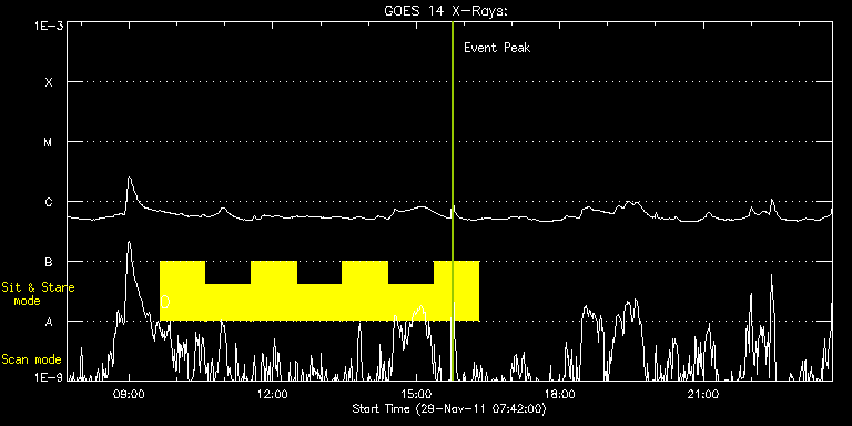 EIS Observation timeline overlay to GOES-Xray curve Code 1" 2" 40" 266" EIS Observations list for this event: STUDY ACRONYM ID DATE OBSERVED DESCRIPTION NOAA# TARGET 0 Flare266_Hunter01 | 25190 | 2011/11/29 09:38:34 | Trigger-enabled Flare hunter study | 1361 | Flare TIMELINE ID DATE OBSERVED FITS FILE XCEN (+W/-E) YCEN (+N/-S) DUR ----------------------------------------------------------------------------------------------------------------- 25190 | 2011/11/29 09:38:34.000 | eis_l0_20111129_093834.fits.gz | -391.81 | 280.30 | 56m22s 25190 | 2011/11/29 10:35:49.000 | eis_l0_20111129_103549.fits.gz | -383.70 | 280.53 | 56m22s 25190 | 2011/11/29 11:33:03.000 | eis_l0_20111129_113303.fits.gz | -375.51 | 280.37 | 56m22s 25190 | 2011/11/29 12:30:17.000 | eis_l0_20111129_123017.fits.gz | -367.40 | 280.45 | 56m23s 25190 | 2011/11/29 13:27:32.000 | eis_l0_20111129_132732.fits.gz | -359.13 | 280.53 | 56m22s 25190 | 2011/11/29 14:24:46.000 | eis_l0_20111129_142446.fits.gz | -351.02 | 280.60 | 56m23s 25190 | 2011/11/29 15:22:01.000 | eis_l0_20111129_152201.fits.gz | -342.68 | 280.68 | 56m22s : Check study information : Download file : View thumbnails For this event, also check for: