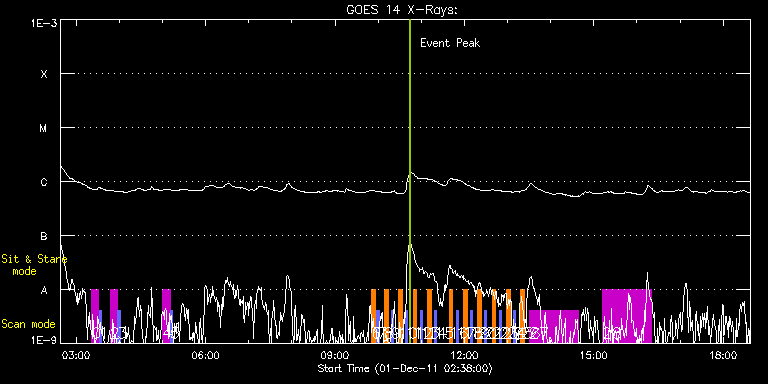 EIS Observation timeline overlay to GOES-Xray curve Code 1" 2" 40" 266" EIS Observations list for this event: STUDY ACRONYM ID DATE OBSERVED DESCRIPTION NOAA# TARGET 0 SK_DEEP_5x512_SLIT1 | 25174 | 2011/12/01 03:21:19 | CORE HOP 79: Synoptic SOT Irradiance S | | Quiet Sun TIMELINE ID DATE OBSERVED FITS FILE XCEN (+W/-E) YCEN (+N/-S) DUR ----------------------------------------------------------------------------------------------------------------- 25174 | 2011/12/01 03:21:19.000 | eis_l0_20111201_032119.fits.gz | -10.03 | 729.65 | 10m8s 1 PRY_slot_contextLITE | 25175 | 2011/12/01 03:31:52 | CORE HOP 79: Synoptic SOT Irradiance S | | Active Region TIMELINE ID DATE OBSERVED FITS FILE XCEN (+W/-E) YCEN (+N/-S) DUR ----------------------------------------------------------------------------------------------------------------- 25175 | 2011/12/01 03:31:52.000 | eis_l0_20111201_033152.fits.gz | -25.25 | 729.57 | 2m57s 2 SK_DEEP_5x512_SLIT1 | 25176 | 2011/12/01 03:47:19 | CORE HOP 79: Synoptic SOT Irradiance S | | Quiet Sun TIMELINE ID DATE OBSERVED FITS FILE XCEN (+W/-E) YCEN (+N/-S) DUR ----------------------------------------------------------------------------------------------------------------- 25176 | 2011/12/01 03:47:19.000 | eis_l0_20111201_034719.fits.gz | -10.03 | 829.60 | 10m7s 3 PRY_slot_contextLITE | 25177 | 2011/12/01 03:57:52 | CORE HOP 79: Synoptic SOT Irradiance S | | Active Region TIMELINE ID DATE OBSERVED FITS FILE XCEN (+W/-E) YCEN (+N/-S) DUR ----------------------------------------------------------------------------------------------------------------- 25177 | 2011/12/01 03:57:52.000 | eis_l0_20111201_035752.fits.gz | -25.33 | 829.60 | 2m56s 4 SK_DEEP_5x512_SLIT1 | 25178 | 2011/12/01 05:00:19 | CORE HOP 79: Synoptic SOT Irradiance S | | Quiet Sun TIMELINE ID DATE OBSERVED FITS FILE XCEN (+W/-E) YCEN (+N/-S) DUR ----------------------------------------------------------------------------------------------------------------- 25178 | 2011/12/01 05:00:19.000 | eis_l0_20111201_050019.fits.gz | -10.03 | 929.41 | 10m8s 5 PRY_slot_contextLITE | 25179 | 2011/12/01 05:10:53 | CORE HOP 79: Synoptic SOT Irradiance S | | Active Region TIMELINE ID DATE OBSERVED FITS FILE XCEN (+W/-E) YCEN (+N/-S) DUR ----------------------------------------------------------------------------------------------------------------- 25179 | 2011/12/01 05:10:53.000 | eis_l0_20111201_051053.fits.gz | -25.33 | 929.33 | 2m56s 6 SK_DEEP_10x512_SLIT2 | 25193 | 2011/12/01 09:51:04 | CORE HOP 79: Synoptic SOT Irradiance S | | Quiet Sun TIMELINE ID DATE OBSERVED FITS FILE XCEN (+W/-E) YCEN (+N/-S) DUR ----------------------------------------------------------------------------------------------------------------- 25193 | 2011/12/01 09:51:04.000 | eis_l0_20111201_095104.fits.gz | -9869.95 | -9963.20 | 5m8s 7 PRY_slot_contextLITE | 25195 | 2011/12/01 09:58:20 | CORE HOP 79: Synoptic SOT Irradiance S | 1362 | Active Region TIMELINE ID DATE OBSERVED FITS FILE XCEN (+W/-E) YCEN (+N/-S) DUR ----------------------------------------------------------------------------------------------------------------- 25195 | 2011/12/01 09:58:20.000 | eis_l0_20111201_095820.fits.gz | -732.30 | -15.49 | 2m57s 8 SK_DEEP_10x512_SLIT2 | 25196 | 2011/12/01 10:08:34 | CORE HOP 79: Synoptic SOT Irradiance S | | Quiet Sun TIMELINE ID DATE OBSERVED FITS FILE XCEN (+W/-E) YCEN (+N/-S) DUR ----------------------------------------------------------------------------------------------------------------- 25196 | 2011/12/01 10:08:34.000 | eis_l0_20111201_100834.fits.gz | -518.50 | -15.64 | 5m8s 9 PRY_slot_contextLITE | 25206 | 2011/12/01 10:18:20 | CORE HOP 79: Synoptic SOT Irradiance S | 1362 | Active Region TIMELINE ID DATE OBSERVED FITS FILE XCEN (+W/-E) YCEN (+N/-S) DUR ----------------------------------------------------------------------------------------------------------------- 25206 | 2011/12/01 10:18:20.000 | eis_l0_20111201_101820.fits.gz | -334.09 | -15.56 | 2m57s 10 SK_DEEP_10x512_SLIT2 | 25197 | 2011/12/01 10:28:34 | CORE HOP 79: Synoptic SOT Irradiance S | | Quiet Sun TIMELINE ID DATE OBSERVED FITS FILE XCEN (+W/-E) YCEN (+N/-S) DUR ----------------------------------------------------------------------------------------------------------------- 25197 | 2011/12/01 10:28:34.000 | eis_l0_20111201_102834.fits.gz | -120.28 | -15.56 | 5m8s 11 PRY_slot_contextLITE | 25207 | 2011/12/01 10:38:20 | CORE HOP 79: Synoptic SOT Irradiance S | | Active Region TIMELINE ID DATE OBSERVED FITS FILE XCEN (+W/-E) YCEN (+N/-S) DUR ----------------------------------------------------------------------------------------------------------------- 25207 | 2011/12/01 10:38:20.000 | eis_l0_20111201_103820.fits.gz | 63.97 | -15.49 | 2m57s 12 SK_DEEP_10x512_SLIT2 | 25198 | 2011/12/01 10:48:34 | CORE HOP 79: Synoptic SOT Irradiance S | | Quiet Sun TIMELINE ID DATE OBSERVED FITS FILE XCEN (+W/-E) YCEN (+N/-S) DUR ----------------------------------------------------------------------------------------------------------------- 25198 | 2011/12/01 10:48:34.000 | eis_l0_20111201_104834.fits.gz | 269.77 | -15.56 | 5m8s 13 PRY_slot_contextLITE | 25208 | 2011/12/01 10:58:20 | CORE HOP 79: Synoptic SOT Irradiance S | | Active Region TIMELINE ID DATE OBSERVED FITS FILE XCEN (+W/-E) YCEN (+N/-S) DUR ----------------------------------------------------------------------------------------------------------------- 25208 | 2011/12/01 10:58:20.000 | eis_l0_20111201_105820.fits.gz | 462.10 | -15.49 | 2m56s 14 SK_DEEP_10x512_SLIT2 | 25199 | 2011/12/01 11:08:33 | CORE HOP 79: Synoptic SOT Irradiance S | | Quiet Sun TIMELINE ID DATE OBSERVED FITS FILE XCEN (+W/-E) YCEN (+N/-S) DUR ----------------------------------------------------------------------------------------------------------------- 25199 | 2011/12/01 11:08:33.000 | eis_l0_20111201_110833.fits.gz | 675.98 | -15.56 | 5m8s 15 PRY_slot_contextLITE | 25209 | 2011/12/01 11:18:20 | CORE HOP 79: Synoptic SOT Irradiance S | | Active R