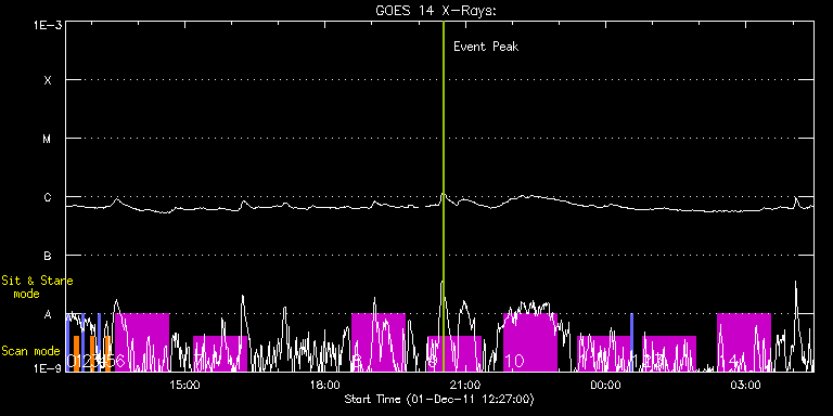 EIS Observation timeline overlay to GOES-Xray curve Code 1" 2" 40" 266" EIS Observations list for this event: STUDY ACRONYM ID DATE OBSERVED DESCRIPTION NOAA# TARGET 0 PRY_slot_contextLITE | 25212 | 2011/12/01 12:28:20 | CORE HOP 79: Synoptic SOT Irradiance S | 1361 | Active Region TIMELINE ID DATE OBSERVED FITS FILE XCEN (+W/-E) YCEN (+N/-S) DUR ----------------------------------------------------------------------------------------------------------------- 25212 | 2011/12/01 12:28:20.000 | eis_l0_20111201_122820.fits.gz | -5.09 | 221.66 | 2m56s 1 SK_DEEP_10x512_SLIT2 | 25203 | 2011/12/01 12:38:33 | CORE HOP 79: Synoptic SOT Irradiance S | | Quiet Sun TIMELINE ID DATE OBSERVED FITS FILE XCEN (+W/-E) YCEN (+N/-S) DUR ----------------------------------------------------------------------------------------------------------------- 25203 | 2011/12/01 12:38:33.000 | eis_l0_20111201_123833.fits.gz | 164.30 | 222.13 | 5m8s 2 PRY_slot_contextLITE | 25213 | 2011/12/01 12:48:20 | CORE HOP 79: Synoptic SOT Irradiance S | 1358 | Active Region TIMELINE ID DATE OBSERVED FITS FILE XCEN (+W/-E) YCEN (+N/-S) DUR ----------------------------------------------------------------------------------------------------------------- 25213 | 2011/12/01 12:48:20.000 | eis_l0_20111201_124820.fits.gz | 340.51 | 222.67 | 2m56s 3 SK_DEEP_10x512_SLIT2 | 25204 | 2011/12/01 12:58:33 | CORE HOP 79: Synoptic SOT Irradiance S | | Quiet Sun TIMELINE ID DATE OBSERVED FITS FILE XCEN (+W/-E) YCEN (+N/-S) DUR ----------------------------------------------------------------------------------------------------------------- 25204 | 2011/12/01 12:58:33.000 | eis_l0_20111201_125833.fits.gz | 541.34 | 224.52 | 5m8s 4 PRY_slot_contextLITE | 25214 | 2011/12/01 13:08:20 | CORE HOP 79: Synoptic SOT Irradiance S | 1355 | Active Region TIMELINE ID DATE OBSERVED FITS FILE XCEN (+W/-E) YCEN (+N/-S) DUR ----------------------------------------------------------------------------------------------------------------- 25214 | 2011/12/01 13:08:20.000 | eis_l0_20111201_130820.fits.gz | 708.37 | 226.99 | 2m56s 5 SK_DEEP_10x512_SLIT2 | 25205 | 2011/12/01 13:18:33 | CORE HOP 79: Synoptic SOT Irradiance S | 1356 | Quiet Sun TIMELINE ID DATE OBSERVED FITS FILE XCEN (+W/-E) YCEN (+N/-S) DUR ----------------------------------------------------------------------------------------------------------------- 25205 | 2011/12/01 13:18:33.000 | eis_l0_20111201_131833.fits.gz | 903.94 | 211.08 | 5m7s 6 VHH_SlowAR_1h12_V2 | 25215 | 2011/12/01 13:30:26 | Series of AR scans (Only 1st is DPCM f | 1361 | Active Region TIMELINE ID DATE OBSERVED FITS FILE XCEN (+W/-E) YCEN (+N/-S) DUR ----------------------------------------------------------------------------------------------------------------- 25215 | 2011/12/01 13:30:26.000 | eis_l0_20111201_133026.fits.gz | 178.90 | 289.41 | 1h8m5s 7 VHH_SlowAR_1h12_V2 | 25216 | 2011/12/01 15:11:39 | Series of AR scans | 1361 | Active Region TIMELINE ID DATE OBSERVED FITS FILE XCEN (+W/-E) YCEN (+N/-S) DUR ----------------------------------------------------------------------------------------------------------------- 25216 | 2011/12/01 15:11:39.000 | eis_l0_20111201_151139.fits.gz | 193.58 | 289.49 | 1h8m5s 8 VHH_SlowAR_1h12_V2 | 25217 | 2011/12/01 18:34:44 | Series of AR scans | 1361 | Active Region TIMELINE ID DATE OBSERVED FITS FILE XCEN (+W/-E) YCEN (+N/-S) DUR ----------------------------------------------------------------------------------------------------------------- 25217 | 2011/12/01 18:34:44.000 | eis_l0_20111201_183444.fits.gz | 222.78 | 289.95 | 1h8m5s 9 VHH_SlowAR_1h12_V2 | 25218 | 2011/12/01 20:11:43 | Series of AR scans | 1361 | Active Region TIMELINE ID DATE OBSERVED FITS FILE XCEN (+W/-E) YCEN (+N/-S) DUR ----------------------------------------------------------------------------------------------------------------- 25218 | 2011/12/01 20:11:43.000 | eis_l0_20111201_201143.fits.gz | 236.60 | 290.11 | 1h8m6s 10 VHH_SlowAR_1h12_V2 | 25219 | 2011/12/01 21:48:43 | Series of AR scans | 1358 | Active Region TIMELINE ID DATE OBSERVED FITS FILE XCEN (+W/-E) YCEN (+N/-S) DUR ----------------------------------------------------------------------------------------------------------------- 25219 | 2011/12/01 21:48:43.000 | eis_l0_20111201_214843.fits.gz | 250.59 | 290.26 | 1h8m5s 11 VHH_SlowAR_1h12_V2 | 25220 | 2011/12/01 23:23:14 | Series of AR scans | 1358 | Active Region TIMELINE ID DATE OBSERVED FITS FILE XCEN (+W/-E) YCEN (+N/-S) DUR ----------------------------------------------------------------------------------------------------------------- 25220 | 2011/12/01 23:23:14.000 | eis_l0_20111201_232314.fits.gz | 263.87 | 290.57 | 1h8m4s 12 PRY_slot_contextLITE | 25221 | 2011/12/02 00:31:42 | | 1361 | Active Region TIMELINE ID DATE OBSERVED FITS FILE XCEN (+W/-E) YCEN (+N/-S) DUR ----------------------------------------------------------------------------------------------------------------- 25221 | 2011/12/02 00:31:42.000 | eis_l0_20111202_003142.fits.gz | 258.55 | 290.72 | 2m56s 13 VHH_SlowAR_1h12_V2 | 25222 | 2011/12/02 00:47:19 | Series of AR scans | 1361 | Active Region TIMELINE ID DATE OBSERVED FITS FILE XCEN (+W/-E) YCEN (+N/-S) DUR ----------------------------------------------------------------------------------------------------------------- 25222 | 2011/12/02 00:47:19.000 | eis_l0_20111202_004719.fits.gz | 275.77 | 290.72 | 1h8m6s 14 VHH_SlowAR_1h12_V2 | 25223 | 2011/12/02 02:23:09 | Series of AR scans | 1361 | Active Region TIMELINE ID DATE OBSERVED FITS FILE XCEN (+W/-E) YCEN (+N/-S) DUR ----------------------------------------------------------------------------------------------------------------- 25223 | 2011/12/02 02:23:09.000 | eis_l0_20111202_022309.fits.gz | 289.21 | 291.03 | 1h8m5s : Check study information : Download file : View thumbnails For this event, also check for: