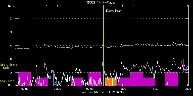 EIS Observation timeline overlay to GOES-Xray curve Code 1" 2" 40" 266" EIS Observations list for this event: STUDY ACRONYM ID DATE OBSERVED DESCRIPTION NOAA# TARGET 0 VHH_SlowAR_1h12_V2 | 25223 | 2011/12/02 02:23:09 | Series of AR scans | 1361 | Active Region TIMELINE ID DATE OBSERVED FITS FILE XCEN (+W/-E) YCEN (+N/-S) DUR ----------------------------------------------------------------------------------------------------------------- 25223 | 2011/12/02 02:23:09.000 | eis_l0_20111202_022309.fits.gz | 289.21 | 291.03 | 1h8m5s 1 VHH_SlowAR_1h12_V2 | 25224 | 2011/12/02 04:00:40 | Series of AR scans | 1361 | Active Region TIMELINE ID DATE OBSERVED FITS FILE XCEN (+W/-E) YCEN (+N/-S) DUR ----------------------------------------------------------------------------------------------------------------- 25224 | 2011/12/02 04:00:40.000 | eis_l0_20111202_040040.fits.gz | 302.88 | 291.26 | 1h8m5s 2 PRY_slot_contextLITE | 25225 | 2011/12/02 05:38:03 | | 1361 | Active Region TIMELINE ID DATE OBSERVED FITS FILE XCEN (+W/-E) YCEN (+N/-S) DUR ----------------------------------------------------------------------------------------------------------------- 25225 | 2011/12/02 05:38:03.000 | eis_l0_20111202_053803.fits.gz | 301.50 | 291.34 | 2m56s 3 VHH_SlowAR_1h12_V2 | 25226 | 2011/12/02 07:15:19 | Series of AR scans | 1361 | Active Region TIMELINE ID DATE OBSERVED FITS FILE XCEN (+W/-E) YCEN (+N/-S) DUR ----------------------------------------------------------------------------------------------------------------- 25226 | 2011/12/02 07:15:19.000 | eis_l0_20111202_071519.fits.gz | 329.84 | 291.65 | 1h8m5s 4 VHH_SlowAR_1h12_V2 | 25227 | 2011/12/02 08:52:09 | Series of AR scans | 1361 | Active Region TIMELINE ID DATE OBSERVED FITS FILE XCEN (+W/-E) YCEN (+N/-S) DUR ----------------------------------------------------------------------------------------------------------------- 25227 | 2011/12/02 08:52:09.000 | eis_l0_20111202_085209.fits.gz | 343.21 | 291.88 | 1h8m5s 5 Atlas_60 | 25228 | 2011/12/02 10:23:56 | Spectral Atlas for comparison with ong | | Quiet Sun TIMELINE ID DATE OBSERVED FITS FILE XCEN (+W/-E) YCEN (+N/-S) DUR ----------------------------------------------------------------------------------------------------------------- 25228 | 2011/12/02 10:23:56.000 | eis_l0_20111202_102356.fits.gz | 355.48 | 291.96 | 1h1m39s 6 PRY_slot_context_v3 | 25229 | 2011/12/02 11:25:46 | | 1358 | Active Region TIMELINE ID DATE OBSERVED FITS FILE XCEN (+W/-E) YCEN (+N/-S) DUR ----------------------------------------------------------------------------------------------------------------- 25229 | 2011/12/02 11:25:46.000 | eis_l0_20111202_112546.fits.gz | 349.16 | 291.96 | 2m56s 7 VHH_SlowAR_1h12_V2 | 25230 | 2011/12/02 11:35:19 | Series of AR scans | 1361 | Active Region TIMELINE ID DATE OBSERVED FITS FILE XCEN (+W/-E) YCEN (+N/-S) DUR ----------------------------------------------------------------------------------------------------------------- 25230 | 2011/12/02 11:35:19.000 | eis_l0_20111202_113519.fits.gz | 365.45 | 292.11 | 1h8m5s 25230 | 2011/12/02 12:43:27.000 | eis_l0_20111202_124327.fits.gz | 374.72 | 292.19 | 1h8m4s 25230 | 2011/12/02 13:51:34.000 | eis_l0_20111202_135134.fits.gz | 383.92 | 292.50 | 1h8m6s 8 VHH_SlowAR_1h12_V2 | 25234 | 2011/12/02 15:58:09 | Series of AR scans | 1361 | Active Region TIMELINE ID DATE OBSERVED FITS FILE XCEN (+W/-E) YCEN (+N/-S) DUR ----------------------------------------------------------------------------------------------------------------- 25234 | 2011/12/02 15:58:09.000 | eis_l0_20111202_155809.fits.gz | 400.76 | 292.58 | 1h8m5s 9 regcal071 | 25232 | 2011/12/02 17:35:41 | Dark exposures, CCD bottom rows (100s | | Engineering TIMELINE ID DATE OBSERVED FITS FILE XCEN (+W/-E) YCEN (+N/-S) DUR ----------------------------------------------------------------------------------------------------------------- 25232 | 2011/12/02 17:35:41.000 | eis_l0_20111202_173541.fits.gz | 428.56 | -12.19 | 3m22s 10 regcal072 | 25233 | 2011/12/02 17:39:30 | Dark exposures, top CCD rows (100s exp | | Engineering TIMELINE ID DATE OBSERVED FITS FILE XCEN (+W/-E) YCEN (+N/-S) DUR ----------------------------------------------------------------------------------------------------------------- 25233 | 2011/12/02 17:39:30.000 | eis_l0_20111202_173930.fits.gz | 429.10 | 498.73 | 3m22s : Check study information : Download file : View thumbnails For this event, also check for: