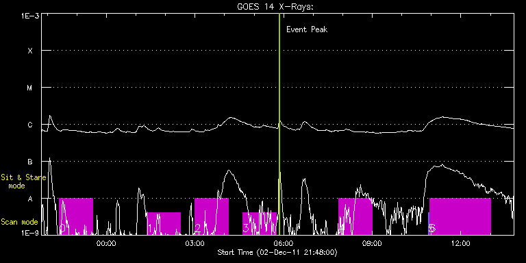 EIS Observation timeline overlay to GOES-Xray curve Code 1" 2" 40" 266" EIS Observations list for this event: STUDY ACRONYM ID DATE OBSERVED DESCRIPTION NOAA# TARGET 0 VHH_SlowAR_1h12_V2 | 25237 | 2011/12/02 22:24:39 | Series of AR scans | 1358 | Active Region TIMELINE ID DATE OBSERVED FITS FILE XCEN (+W/-E) YCEN (+N/-S) DUR ----------------------------------------------------------------------------------------------------------------- 25237 | 2011/12/02 22:24:39.000 | eis_l0_20111202_222439.fits.gz | 451.51 | 293.35 | 1h8m4s 1 VHH_SlowAR_1h12_V2 | 25239 | 2011/12/03 01:22:43 | Series of AR scans | 1361 | Active Region TIMELINE ID DATE OBSERVED FITS FILE XCEN (+W/-E) YCEN (+N/-S) DUR ----------------------------------------------------------------------------------------------------------------- 25239 | 2011/12/03 01:22:43.000 | eis_l0_20111203_012243.fits.gz | 474.14 | 293.89 | 1h8m4s 2 VHH_SlowAR_1h12_V2 | 25240 | 2011/12/03 02:59:13 | Series of AR scans | 1361 | Active Region TIMELINE ID DATE OBSERVED FITS FILE XCEN (+W/-E) YCEN (+N/-S) DUR ----------------------------------------------------------------------------------------------------------------- 25240 | 2011/12/03 02:59:13.000 | eis_l0_20111203_025913.fits.gz | 486.35 | 294.12 | 1h8m4s 3 VHH_SlowAR_1h12_V2 | 25241 | 2011/12/03 04:36:43 | Series of AR scans | 1361 | Active Region TIMELINE ID DATE OBSERVED FITS FILE XCEN (+W/-E) YCEN (+N/-S) DUR ----------------------------------------------------------------------------------------------------------------- 25241 | 2011/12/03 04:36:43.000 | eis_l0_20111203_043643.fits.gz | 498.63 | 294.20 | 1h8m5s 4 VHH_SlowAR_1h12_V2 | 25242 | 2011/12/03 07:51:13 | Series of AR scans | 1361 | Active Region TIMELINE ID DATE OBSERVED FITS FILE XCEN (+W/-E) YCEN (+N/-S) DUR ----------------------------------------------------------------------------------------------------------------- 25242 | 2011/12/03 07:51:13.000 | eis_l0_20111203_075113.fits.gz | 522.50 | 294.74 | 1h8m5s 5 PRY_slot_context_v3 | 25249 | 2011/12/03 10:53:34 | Context image for AR studies | 1358 | Active Region TIMELINE ID DATE OBSERVED FITS FILE XCEN (+W/-E) YCEN (+N/-S) DUR ----------------------------------------------------------------------------------------------------------------- 25249 | 2011/12/03 10:53:34.000 | eis_l0_20111203_105334.fits.gz | 529.46 | 295.05 | 2m57s 6 HPW021_VEL_240x512v1 | 25250 | 2011/12/03 10:56:42 | AR observations (detailed raster). | 1361 | Active Region TIMELINE ID DATE OBSERVED FITS FILE XCEN (+W/-E) YCEN (+N/-S) DUR ----------------------------------------------------------------------------------------------------------------- 25250 | 2011/12/03 10:56:42.000 | eis_l0_20111203_105642.fits.gz | 544.90 | 294.97 | 2h3m47s : Check study information : Download file : View thumbnails For this event, also check for:
