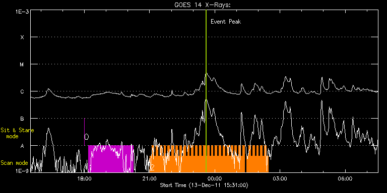 EIS Observation timeline overlay to GOES-Xray curve Code 1" 2" 40" 266" EIS Observations list for this event: STUDY ACRONYM ID DATE OBSERVED DESCRIPTION NOAA# TARGET 0 regcal077 | 25288 | 2011/12/13 17:59:12 | Flatfield, 2 exposures, led 80ms, full | | Engineering TIMELINE ID DATE OBSERVED FITS FILE XCEN (+W/-E) YCEN (+N/-S) DUR ----------------------------------------------------------------------------------------------------------------- 25288 | 2011/12/13 17:59:12.000 | eis_l0_20111213_175912.fits.gz | 14.74 | -50.27 | 4s 1 HPW021_VEL_240x512v1 | 25317 | 2011/12/13 18:11:10 | Active Region Studies | 1374 | Active Region TIMELINE ID DATE OBSERVED FITS FILE XCEN (+W/-E) YCEN (+N/-S) DUR ----------------------------------------------------------------------------------------------------------------- 25317 | 2011/12/13 18:11:10.000 | eis_l0_20111213_181110.fits.gz | -132.49 | -304.24 | 2h3m47s 2 IUU_SCAN_STEPS_002 | 25318 | 2011/12/13 21:00:56 | Active Region Studies | | Active Region TIMELINE ID DATE OBSERVED FITS FILE XCEN (+W/-E) YCEN (+N/-S) DUR ----------------------------------------------------------------------------------------------------------------- 25318 | 2011/12/13 21:00:56.000 | eis_l0_20111213_210056.fits.gz | -108.92 | -303.85 | 5m24s 25318 | 2011/12/13 21:06:23.000 | eis_l0_20111213_210623.fits.gz | -108.15 | -303.85 | 5m24s 25318 | 2011/12/13 21:11:50.000 | eis_l0_20111213_211150.fits.gz | -107.30 | -303.93 | 5m24s 25318 | 2011/12/13 21:17:17.000 | eis_l0_20111213_211717.fits.gz | -106.53 | -303.85 | 5m23s 25318 | 2011/12/13 21:22:44.000 | eis_l0_20111213_212244.fits.gz | -105.68 | -303.85 | 5m23s 25318 | 2011/12/13 21:28:11.000 | eis_l0_20111213_212811.fits.gz | -104.91 | -303.77 | 5m24s 25318 | 2011/12/13 21:33:38.000 | eis_l0_20111213_213338.fits.gz | -104.13 | -303.85 | 5m23s 25318 | 2011/12/13 21:39:05.000 | eis_l0_20111213_213905.fits.gz | -103.36 | -303.85 | 5m23s 25318 | 2011/12/13 21:44:31.000 | eis_l0_20111213_214431.fits.gz | -102.36 | -303.85 | 5m24s 25318 | 2011/12/13 21:49:58.000 | eis_l0_20111213_214958.fits.gz | -101.66 | -303.93 | 5m24s 25318 | 2011/12/13 21:55:25.000 | eis_l0_20111213_215525.fits.gz | -100.89 | -303.85 | 5m23s 25318 | 2011/12/13 22:00:52.000 | eis_l0_20111213_220052.fits.gz | -100.12 | -303.85 | 5m23s 25318 | 2011/12/13 22:06:19.000 | eis_l0_20111213_220619.fits.gz | -99.27 | -303.85 | 5m23s 25318 | 2011/12/13 22:11:45.000 | eis_l0_20111213_221145.fits.gz | -98.57 | -303.70 | 5m24s 25318 | 2011/12/13 22:17:12.000 | eis_l0_20111213_221712.fits.gz | -97.72 | -303.62 | 5m24s 25318 | 2011/12/13 22:22:39.000 | eis_l0_20111213_222239.fits.gz | -96.95 | -303.70 | 5m23s 25318 | 2011/12/13 22:28:06.000 | eis_l0_20111213_222806.fits.gz | -96.10 | -303.85 | 5m23s 25318 | 2011/12/13 22:33:33.000 | eis_l0_20111213_223333.fits.gz | -95.25 | -303.85 | 5m23s 25318 | 2011/12/13 22:38:59.000 | eis_l0_20111213_223859.fits.gz | -94.56 | -303.70 | 5m24s 25318 | 2011/12/13 22:44:26.000 | eis_l0_20111213_224426.fits.gz | -93.78 | -303.62 | 5m23s 25318 | 2011/12/13 22:49:53.000 | eis_l0_20111213_224953.fits.gz | -93.01 | -303.77 | 5m23s 25318 | 2011/12/13 22:55:20.000 | eis_l0_20111213_225520.fits.gz | -92.16 | -303.77 | 5m23s 25318 | 2011/12/13 23:00:46.000 | eis_l0_20111213_230046.fits.gz | -91.47 | -303.62 | 5m24s 25318 | 2011/12/13 23:06:13.000 | eis_l0_20111213_230613.fits.gz | -90.46 | -303.77 | 5m24s 25318 | 2011/12/13 23:11:40.000 | eis_l0_20111213_231140.fits.gz | -89.69 | -303.62 | 5m23s 25318 | 2011/12/13 23:17:07.000 | eis_l0_20111213_231707.fits.gz | -88.99 | -303.70 | 5m23s 25318 | 2011/12/13 23:22:33.000 | eis_l0_20111213_232233.fits.gz | -88.14 | -303.77 | 5m24s 25318 | 2011/12/13 23:28:00.000 | eis_l0_20111213_232800.fits.gz | -87.37 | -303.70 | 5m24s 25318 | 2011/12/13 23:33:27.000 | eis_l0_20111213_233327.fits.gz | -86.52 | -303.54 | 5m23s 25318 | 2011/12/13 23:38:54.000 | eis_l0_20111213_233854.fits.gz | -85.75 | -303.62 | 5m23s 25318 | 2011/12/13 23:44:21.000 | eis_l0_20111213_234421.fits.gz | -84.98 | -303.54 | 5m23s 25318 | 2011/12/13 23:49:47.000 | eis_l0_20111213_234947.fits.gz | -84.05 | -303.70 | 5m24s 25318 | 2011/12/13 23:55:14.000 | eis_l0_20111213_235514.fits.gz | -83.35 | -303.54 | 5m24s 25318 | 2011/12/14 00:00:41.000 | eis_l0_20111214_000041.fits.gz | -82.58 | -303.54 | 5m23s 25318 | 2011/12/14 00:06:08.000 | eis_l0_20111214_000608.fits.gz | -81.73 | -303.70 | 5m23s 25318 | 2011/12/14 00:11:34.000 | eis_l0_20111214_001134.fits.gz | -80.96 | -303.62 | 5m24s 25318 | 2011/12/14 00:17:01.000 | eis_l0_20111214_001701.fits.gz | -80.19 | -303.54 | 5m24s 25318 | 2011/12/14 00:22:28.000 | eis_l0_20111214_002228.fits.gz | -79.41 | -303.62 | 5m23s 25318 | 2011/12/14 00:27:55.000 | eis_l0_20111214_002755.fits.gz | -78.56 | -303.54 | 5m23s 25318 | 2011/12/14 00:33:22.000 | eis_l0_20111214_003322.fits.gz | -77.79 | -303.54 | 5m23s 25318 | 2011/12/14 00:38:48.000 | eis_l0_20111214_003848.fits.gz | -76.94 | -303.70 | 5m24s 25318 | 2011/12/14 00:44:15.000 | eis_l0_20111214_004415.fits.gz | -76.25 | -303.62 | 5m24s 25318 | 2011/12/14 00:49:42.000 | eis_l0_20111214_004942.fits.gz | -75.40 | -303.62 | 5m23s 25318 | 2011/12/14 00:55:09.000 | eis_l0_20111214_005509.fits.gz | -74.55 | -303.62 | 5m23s 25318 | 2011/12/14 01:00:35.000 | eis_l0_20111214_010035.fits.gz | -73.70 | -303.54 | 5m24s 25318 | 2011/12/14 01:06:02.000 | eis_l0_20111214_010602.fits.gz | -72.93 | -303.62 | 5m24s 25318 | 2011/12/14 01:11:29.000 | eis_l0_20111214_011129.fits.gz | -72.23 | -303.39 | 5m23s 25318 | 2011/12/14 01:16:56.000 | eis_l0_20111214_011656.fits.gz | -71.30 | -303.62 | 5m23s 25318 | 2011/12/14 01:27:49.000 | eis_l0_20111214_012749.fits.gz | -69.76 | -303.39 | 5m24s 25318 | 2011/12/14 01:33:16.000 | eis_l0_20111214_013316.fits.gz | -68.99 | -303.31 | 5m24s 25318 | 2011/12/14 01:38:43.000 | eis_l0_20111214_013843.fits.gz | -68.06 | -303.46 | 5m23s 25318 | 2011/12/14 01:44:10.000 | eis_l0_20111214_014410.fits.gz | -67.36 | -303.46 | 5m23s 25318 | 2011/12/14 01:49