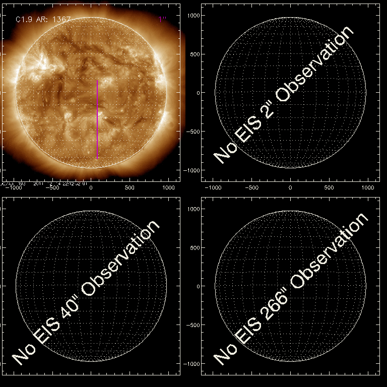 EIS Observation timeline overlay to GOES-Xray curve Code 1" 2" 40" 266" EIS Observations list for this event: STUDY ACRONYM ID DATE OBSERVED DESCRIPTION NOAA# TARGET 0 regcal071 | 25289 | 2011/12/14 16:47:41 | Dark exposures, CCD bottom rows (100s | | Engineering TIMELINE ID DATE OBSERVED FITS FILE XCEN (+W/-E) YCEN (+N/-S) DUR ----------------------------------------------------------------------------------------------------------------- 25289 | 2011/12/14 16:47:41.000 | eis_l0_20111214_164741.fits.gz | 81.72 | -607.15 | 3m22s 1 regcal072 | 25290 | 2011/12/14 16:51:30 | Dark exposures, top CCD rows (100s exp | | Engineering TIMELINE ID DATE OBSERVED FITS FILE XCEN (+W/-E) YCEN (+N/-S) DUR ----------------------------------------------------------------------------------------------------------------- 25290 | 2011/12/14 16:51:30.000 | eis_l0_20111214_165130.fits.gz | 82.33 | -96.23 | 3m21s : Check study information : Download file : View thumbnails For this event, also check for: