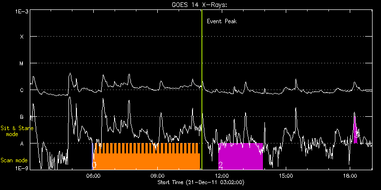 EIS Observation timeline overlay to GOES-Xray curve Code 1" 2" 40" 266" EIS Observations list for this event: STUDY ACRONYM ID DATE OBSERVED DESCRIPTION NOAA# TARGET 0 PRY_slot_context_v3 | 25339 | 2011/12/21 05:55:20 | Active Region context image. AR 11381 | 1381 | Active Region TIMELINE ID DATE OBSERVED FITS FILE XCEN (+W/-E) YCEN (+N/-S) DUR ----------------------------------------------------------------------------------------------------------------- 25339 | 2011/12/21 05:55:20.000 | eis_l0_20111221_055520.fits.gz | 7.11 | -286.08 | 2m56s 1 IUU_SCAN_STEPS_002 | 25340 | 2011/12/21 05:58:41 | Active Region fast scans. AR 11381. | | Active Region TIMELINE ID DATE OBSERVED FITS FILE XCEN (+W/-E) YCEN (+N/-S) DUR ----------------------------------------------------------------------------------------------------------------- 25340 | 2011/12/21 05:58:41.000 | eis_l0_20111221_055841.fits.gz | 63.67 | -219.85 | 5m24s 25340 | 2011/12/21 06:04:08.000 | eis_l0_20111221_060408.fits.gz | 64.60 | -219.93 | 5m23s 25340 | 2011/12/21 06:09:35.000 | eis_l0_20111221_060935.fits.gz | 65.45 | -220.01 | 5m23s 25340 | 2011/12/21 06:15:02.000 | eis_l0_20111221_061502.fits.gz | 66.14 | -220.01 | 5m23s 25340 | 2011/12/21 06:20:29.000 | eis_l0_20111221_062029.fits.gz | 66.99 | -220.01 | 5m23s 25340 | 2011/12/21 06:25:55.000 | eis_l0_20111221_062555.fits.gz | 67.84 | -219.93 | 5m24s 25340 | 2011/12/21 06:31:22.000 | eis_l0_20111221_063122.fits.gz | 68.54 | -219.93 | 5m23s 25340 | 2011/12/21 06:36:49.000 | eis_l0_20111221_063649.fits.gz | 69.39 | -219.93 | 5m23s 25340 | 2011/12/21 06:42:16.000 | eis_l0_20111221_064216.fits.gz | 70.24 | -219.85 | 5m23s 25340 | 2011/12/21 06:47:42.000 | eis_l0_20111221_064742.fits.gz | 71.01 | -219.93 | 5m24s 25340 | 2011/12/21 06:53:09.000 | eis_l0_20111221_065309.fits.gz | 71.78 | -219.85 | 5m23s 25340 | 2011/12/21 06:58:36.000 | eis_l0_20111221_065836.fits.gz | 72.71 | -219.93 | 5m23s 25340 | 2011/12/21 07:04:03.000 | eis_l0_20111221_070403.fits.gz | 73.40 | -219.85 | 5m23s 25340 | 2011/12/21 07:09:29.000 | eis_l0_20111221_070929.fits.gz | 74.25 | -219.85 | 5m24s 25340 | 2011/12/21 07:14:56.000 | eis_l0_20111221_071456.fits.gz | 74.95 | -219.85 | 5m23s 25340 | 2011/12/21 07:20:23.000 | eis_l0_20111221_072023.fits.gz | 75.80 | -219.70 | 5m23s 25340 | 2011/12/21 07:25:50.000 | eis_l0_20111221_072550.fits.gz | 76.49 | -219.77 | 5m23s 25340 | 2011/12/21 07:31:17.000 | eis_l0_20111221_073117.fits.gz | 77.50 | -219.85 | 5m23s 25340 | 2011/12/21 07:36:43.000 | eis_l0_20111221_073643.fits.gz | 78.19 | -219.77 | 5m24s 25340 | 2011/12/21 07:42:10.000 | eis_l0_20111221_074210.fits.gz | 79.04 | -219.70 | 5m23s 25340 | 2011/12/21 07:47:37.000 | eis_l0_20111221_074737.fits.gz | 79.89 | -219.70 | 5m23s 25340 | 2011/12/21 07:53:04.000 | eis_l0_20111221_075304.fits.gz | 80.67 | -219.93 | 5m23s 25340 | 2011/12/21 07:58:30.000 | eis_l0_20111221_075830.fits.gz | 81.44 | -219.77 | 5m24s 25340 | 2011/12/21 08:03:57.000 | eis_l0_20111221_080357.fits.gz | 82.21 | -219.77 | 5m23s 25340 | 2011/12/21 08:09:24.000 | eis_l0_20111221_080924.fits.gz | 83.06 | -219.77 | 5m23s 25340 | 2011/12/21 08:14:51.000 | eis_l0_20111221_081451.fits.gz | 83.83 | -219.93 | 5m23s 25340 | 2011/12/21 08:20:17.000 | eis_l0_20111221_082017.fits.gz | 84.61 | -219.85 | 5m24s 25340 | 2011/12/21 08:25:44.000 | eis_l0_20111221_082544.fits.gz | 85.38 | -219.77 | 5m24s 25340 | 2011/12/21 08:31:11.000 | eis_l0_20111221_083111.fits.gz | 86.30 | -219.77 | 5m23s 25340 | 2011/12/21 08:36:38.000 | eis_l0_20111221_083638.fits.gz | 87.08 | -219.85 | 5m23s 25340 | 2011/12/21 08:42:05.000 | eis_l0_20111221_084205.fits.gz | 87.85 | -219.77 | 5m23s 25340 | 2011/12/21 08:47:31.000 | eis_l0_20111221_084731.fits.gz | 88.70 | -219.77 | 5m24s 25340 | 2011/12/21 08:52:58.000 | eis_l0_20111221_085258.fits.gz | 89.55 | -219.77 | 5m24s 25340 | 2011/12/21 08:58:25.000 | eis_l0_20111221_085825.fits.gz | 90.32 | -219.70 | 5m23s 25340 | 2011/12/21 09:03:52.000 | eis_l0_20111221_090352.fits.gz | 91.02 | -219.62 | 5m23s 25340 | 2011/12/21 09:09:18.000 | eis_l0_20111221_090918.fits.gz | 91.87 | -219.62 | 5m24s 25340 | 2011/12/21 09:14:45.000 | eis_l0_20111221_091445.fits.gz | 92.64 | -219.70 | 5m24s 25340 | 2011/12/21 09:20:12.000 | eis_l0_20111221_092012.fits.gz | 93.41 | -219.70 | 5m23s 25340 | 2011/12/21 09:25:39.000 | eis_l0_20111221_092539.fits.gz | 94.34 | -219.62 | 5m23s 25340 | 2011/12/21 09:31:06.000 | eis_l0_20111221_093106.fits.gz | 95.19 | -219.77 | 5m23s 25340 | 2011/12/21 09:36:32.000 | eis_l0_20111221_093632.fits.gz | 95.88 | -219.77 | 5m24s 25340 | 2011/12/21 09:41:59.000 | eis_l0_20111221_094159.fits.gz | 96.73 | -219.62 | 5m23s 25340 | 2011/12/21 09:47:26.000 | eis_l0_20111221_094726.fits.gz | 97.51 | -219.62 | 5m23s 25340 | 2011/12/21 09:52:53.000 | eis_l0_20111221_095253.fits.gz | 98.28 | -219.70 | 5m23s 25340 | 2011/12/21 09:58:19.000 | eis_l0_20111221_095819.fits.gz | 99.05 | -219.70 | 5m24s 25340 | 2011/12/21 10:03:46.000 | eis_l0_20111221_100346.fits.gz | 99.90 | -219.77 | 5m24s 25340 | 2011/12/21 10:09:13.000 | eis_l0_20111221_100913.fits.gz | 100.67 | -219.54 | 5m23s 25340 | 2011/12/21 10:14:40.000 | eis_l0_20111221_101440.fits.gz | 101.52 | -219.70 | 5m23s 25340 | 2011/12/21 10:20:06.000 | eis_l0_20111221_102006.fits.gz | 102.29 | -219.62 | 5m24s 25340 | 2011/12/21 10:25:33.000 | eis_l0_20111221_102533.fits.gz | 103.07 | -219.70 | 5m24s 25340 | 2011/12/21 10:31:00.000 | eis_l0_20111221_103100.fits.gz | 103.84 | -219.54 | 5m23s 25340 | 2011/12/21 10:36:27.000 | eis_l0_20111221_103627.fits.gz | 104.77 | -219.62 | 5m23s 25340 | 2011/12/21 10:41:54.000 | eis_l0_20111221_104154.fits.gz | 105.54 | -219.62 | 5m23s 25340 | 2011/12/21 10:47:20.000 | eis_l0_20111221_104720.fits.gz | 106.39 | -219.70 | 5m24s 25340 | 2011/12/21 10:52:47.000 | eis_l0_20111221_105247.fits.gz | 107.16 | -219.62 | 5m24s 2 HPW021_VEL_240x512v1 | 25341 | 2011/12/21 11:50:27 | Active Region map. AR 11381 + 11382. | 1381 | Active Region TIMELINE ID DATE OBSERVED FITS FI