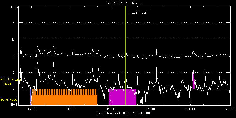 EIS Observation timeline overlay to GOES-Xray curve Code 1" 2" 40" 266" EIS Observations list for this event: STUDY ACRONYM ID DATE OBSERVED DESCRIPTION NOAA# TARGET 0 PRY_slot_context_v3 | 25339 | 2011/12/21 05:55:20 | Active Region context image. AR 11381 | 1381 | Active Region TIMELINE ID DATE OBSERVED FITS FILE XCEN (+W/-E) YCEN (+N/-S) DUR ----------------------------------------------------------------------------------------------------------------- 25339 | 2011/12/21 05:55:20.000 | eis_l0_20111221_055520.fits.gz | 7.11 | -286.08 | 2m56s 1 IUU_SCAN_STEPS_002 | 25340 | 2011/12/21 05:58:41 | Active Region fast scans. AR 11381. | | Active Region TIMELINE ID DATE OBSERVED FITS FILE XCEN (+W/-E) YCEN (+N/-S) DUR ----------------------------------------------------------------------------------------------------------------- 25340 | 2011/12/21 05:58:41.000 | eis_l0_20111221_055841.fits.gz | 63.67 | -219.85 | 5m24s 25340 | 2011/12/21 06:04:08.000 | eis_l0_20111221_060408.fits.gz | 64.60 | -219.93 | 5m23s 25340 | 2011/12/21 06:09:35.000 | eis_l0_20111221_060935.fits.gz | 65.45 | -220.01 | 5m23s 25340 | 2011/12/21 06:15:02.000 | eis_l0_20111221_061502.fits.gz | 66.14 | -220.01 | 5m23s 25340 | 2011/12/21 06:20:29.000 | eis_l0_20111221_062029.fits.gz | 66.99 | -220.01 | 5m23s 25340 | 2011/12/21 06:25:55.000 | eis_l0_20111221_062555.fits.gz | 67.84 | -219.93 | 5m24s 25340 | 2011/12/21 06:31:22.000 | eis_l0_20111221_063122.fits.gz | 68.54 | -219.93 | 5m23s 25340 | 2011/12/21 06:36:49.000 | eis_l0_20111221_063649.fits.gz | 69.39 | -219.93 | 5m23s 25340 | 2011/12/21 06:42:16.000 | eis_l0_20111221_064216.fits.gz | 70.24 | -219.85 | 5m23s 25340 | 2011/12/21 06:47:42.000 | eis_l0_20111221_064742.fits.gz | 71.01 | -219.93 | 5m24s 25340 | 2011/12/21 06:53:09.000 | eis_l0_20111221_065309.fits.gz | 71.78 | -219.85 | 5m23s 25340 | 2011/12/21 06:58:36.000 | eis_l0_20111221_065836.fits.gz | 72.71 | -219.93 | 5m23s 25340 | 2011/12/21 07:04:03.000 | eis_l0_20111221_070403.fits.gz | 73.40 | -219.85 | 5m23s 25340 | 2011/12/21 07:09:29.000 | eis_l0_20111221_070929.fits.gz | 74.25 | -219.85 | 5m24s 25340 | 2011/12/21 07:14:56.000 | eis_l0_20111221_071456.fits.gz | 74.95 | -219.85 | 5m23s 25340 | 2011/12/21 07:20:23.000 | eis_l0_20111221_072023.fits.gz | 75.80 | -219.70 | 5m23s 25340 | 2011/12/21 07:25:50.000 | eis_l0_20111221_072550.fits.gz | 76.49 | -219.77 | 5m23s 25340 | 2011/12/21 07:31:17.000 | eis_l0_20111221_073117.fits.gz | 77.50 | -219.85 | 5m23s 25340 | 2011/12/21 07:36:43.000 | eis_l0_20111221_073643.fits.gz | 78.19 | -219.77 | 5m24s 25340 | 2011/12/21 07:42:10.000 | eis_l0_20111221_074210.fits.gz | 79.04 | -219.70 | 5m23s 25340 | 2011/12/21 07:47:37.000 | eis_l0_20111221_074737.fits.gz | 79.89 | -219.70 | 5m23s 25340 | 2011/12/21 07:53:04.000 | eis_l0_20111221_075304.fits.gz | 80.67 | -219.93 | 5m23s 25340 | 2011/12/21 07:58:30.000 | eis_l0_20111221_075830.fits.gz | 81.44 | -219.77 | 5m24s 25340 | 2011/12/21 08:03:57.000 | eis_l0_20111221_080357.fits.gz | 82.21 | -219.77 | 5m23s 25340 | 2011/12/21 08:09:24.000 | eis_l0_20111221_080924.fits.gz | 83.06 | -219.77 | 5m23s 25340 | 2011/12/21 08:14:51.000 | eis_l0_20111221_081451.fits.gz | 83.83 | -219.93 | 5m23s 25340 | 2011/12/21 08:20:17.000 | eis_l0_20111221_082017.fits.gz | 84.61 | -219.85 | 5m24s 25340 | 2011/12/21 08:25:44.000 | eis_l0_20111221_082544.fits.gz | 85.38 | -219.77 | 5m24s 25340 | 2011/12/21 08:31:11.000 | eis_l0_20111221_083111.fits.gz | 86.30 | -219.77 | 5m23s 25340 | 2011/12/21 08:36:38.000 | eis_l0_20111221_083638.fits.gz | 87.08 | -219.85 | 5m23s 25340 | 2011/12/21 08:42:05.000 | eis_l0_20111221_084205.fits.gz | 87.85 | -219.77 | 5m23s 25340 | 2011/12/21 08:47:31.000 | eis_l0_20111221_084731.fits.gz | 88.70 | -219.77 | 5m24s 25340 | 2011/12/21 08:52:58.000 | eis_l0_20111221_085258.fits.gz | 89.55 | -219.77 | 5m24s 25340 | 2011/12/21 08:58:25.000 | eis_l0_20111221_085825.fits.gz | 90.32 | -219.70 | 5m23s 25340 | 2011/12/21 09:03:52.000 | eis_l0_20111221_090352.fits.gz | 91.02 | -219.62 | 5m23s 25340 | 2011/12/21 09:09:18.000 | eis_l0_20111221_090918.fits.gz | 91.87 | -219.62 | 5m24s 25340 | 2011/12/21 09:14:45.000 | eis_l0_20111221_091445.fits.gz | 92.64 | -219.70 | 5m24s 25340 | 2011/12/21 09:20:12.000 | eis_l0_20111221_092012.fits.gz | 93.41 | -219.70 | 5m23s 25340 | 2011/12/21 09:25:39.000 | eis_l0_20111221_092539.fits.gz | 94.34 | -219.62 | 5m23s 25340 | 2011/12/21 09:31:06.000 | eis_l0_20111221_093106.fits.gz | 95.19 | -219.77 | 5m23s 25340 | 2011/12/21 09:36:32.000 | eis_l0_20111221_093632.fits.gz | 95.88 | -219.77 | 5m24s 25340 | 2011/12/21 09:41:59.000 | eis_l0_20111221_094159.fits.gz | 96.73 | -219.62 | 5m23s 25340 | 2011/12/21 09:47:26.000 | eis_l0_20111221_094726.fits.gz | 97.51 | -219.62 | 5m23s 25340 | 2011/12/21 09:52:53.000 | eis_l0_20111221_095253.fits.gz | 98.28 | -219.70 | 5m23s 25340 | 2011/12/21 09:58:19.000 | eis_l0_20111221_095819.fits.gz | 99.05 | -219.70 | 5m24s 25340 | 2011/12/21 10:03:46.000 | eis_l0_20111221_100346.fits.gz | 99.90 | -219.77 | 5m24s 25340 | 2011/12/21 10:09:13.000 | eis_l0_20111221_100913.fits.gz | 100.67 | -219.54 | 5m23s 25340 | 2011/12/21 10:14:40.000 | eis_l0_20111221_101440.fits.gz | 101.52 | -219.70 | 5m23s 25340 | 2011/12/21 10:20:06.000 | eis_l0_20111221_102006.fits.gz | 102.29 | -219.62 | 5m24s 25340 | 2011/12/21 10:25:33.000 | eis_l0_20111221_102533.fits.gz | 103.07 | -219.70 | 5m24s 25340 | 2011/12/21 10:31:00.000 | eis_l0_20111221_103100.fits.gz | 103.84 | -219.54 | 5m23s 25340 | 2011/12/21 10:36:27.000 | eis_l0_20111221_103627.fits.gz | 104.77 | -219.62 | 5m23s 25340 | 2011/12/21 10:41:54.000 | eis_l0_20111221_104154.fits.gz | 105.54 | -219.62 | 5m23s 25340 | 2011/12/21 10:47:20.000 | eis_l0_20111221_104720.fits.gz | 106.39 | -219.70 | 5m24s 25340 | 2011/12/21 10:52:47.000 | eis_l0_20111221_105247.fits.gz | 107.16 | -219.62 | 5m24s 2 HPW021_VEL_240x512v1 | 25341 | 2011/12/21 11:50:27 | Active Region map. AR 11381 + 11382. | 1381 | Active Region TIMELINE ID DATE OBSERVED FITS FI