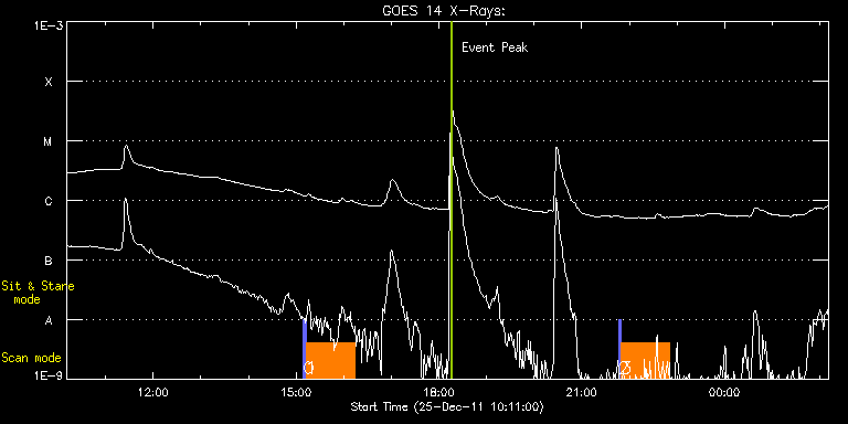 EIS Observation timeline overlay to GOES-Xray curve Code 1" 2" 40" 266" EIS Observations list for this event: STUDY ACRONYM ID DATE OBSERVED DESCRIPTION NOAA# TARGET 0 PRY_slot_context_v3 | 25362 | 2011/12/25 15:09:20 | EIS spectral atlas | 1381 | Active Region TIMELINE ID DATE OBSERVED FITS FILE XCEN (+W/-E) YCEN (+N/-S) DUR ----------------------------------------------------------------------------------------------------------------- 25362 | 2011/12/25 15:09:20.000 | eis_l0_20111225_150920.fits.gz | 778.43 | -293.35 | 2m56s 1 Atlas_60 | 25363 | 2011/12/25 15:12:41 | EIS spectral atlas | 1381 | Quiet Sun TIMELINE ID DATE OBSERVED FITS FILE XCEN (+W/-E) YCEN (+N/-S) DUR ----------------------------------------------------------------------------------------------------------------- 25363 | 2011/12/25 15:12:41.000 | eis_l0_20111225_151241.fits.gz | 793.48 | -293.27 | 1h1m40s 2 PRY_slot_context_v3 | 25364 | 2011/12/25 21:46:19 | EIS spectral atlas | 1381 | Active Region TIMELINE ID DATE OBSERVED FITS FILE XCEN (+W/-E) YCEN (+N/-S) DUR ----------------------------------------------------------------------------------------------------------------- 25364 | 2011/12/25 21:46:19.000 | eis_l0_20111225_214619.fits.gz | 806.93 | -294.81 | 2m56s 3 Atlas_60 | 25365 | 2011/12/25 21:49:40 | EIS spectral atlas | 1381 | Quiet Sun TIMELINE ID DATE OBSERVED FITS FILE XCEN (+W/-E) YCEN (+N/-S) DUR ----------------------------------------------------------------------------------------------------------------- 25365 | 2011/12/25 21:49:40.000 | eis_l0_20111225_214940.fits.gz | 821.75 | -294.74 | 1h1m40s : Check study information : Download file : View thumbnails For this event, also check for: