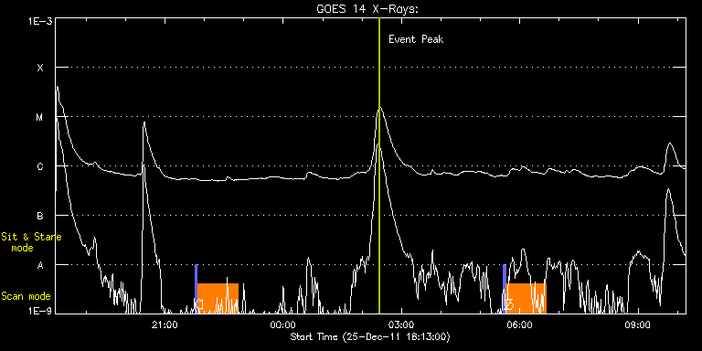 EIS Observation timeline overlay to GOES-Xray curve Code 1" 2" 40" 266" EIS Observations list for this event: STUDY ACRONYM ID DATE OBSERVED DESCRIPTION NOAA# TARGET 0 PRY_slot_context_v3 | 25364 | 2011/12/25 21:46:19 | EIS spectral atlas | 1381 | Active Region TIMELINE ID DATE OBSERVED FITS FILE XCEN (+W/-E) YCEN (+N/-S) DUR ----------------------------------------------------------------------------------------------------------------- 25364 | 2011/12/25 21:46:19.000 | eis_l0_20111225_214619.fits.gz | 806.93 | -294.81 | 2m56s 1 Atlas_60 | 25365 | 2011/12/25 21:49:40 | EIS spectral atlas | 1381 | Quiet Sun TIMELINE ID DATE OBSERVED FITS FILE XCEN (+W/-E) YCEN (+N/-S) DUR ----------------------------------------------------------------------------------------------------------------- 25365 | 2011/12/25 21:49:40.000 | eis_l0_20111225_214940.fits.gz | 821.75 | -294.74 | 1h1m40s 2 PRY_slot_context_v3 | 25366 | 2011/12/26 05:35:19 | EIS spectral atlas | 1381 | Active Region TIMELINE ID DATE OBSERVED FITS FILE XCEN (+W/-E) YCEN (+N/-S) DUR ----------------------------------------------------------------------------------------------------------------- 25366 | 2011/12/26 05:35:19.000 | eis_l0_20111226_053519.fits.gz | 836.21 | -296.67 | 2m57s 3 Atlas_60 | 25367 | 2011/12/26 05:38:41 | EIS spectral atlas | 1381 | Quiet Sun TIMELINE ID DATE OBSERVED FITS FILE XCEN (+W/-E) YCEN (+N/-S) DUR ----------------------------------------------------------------------------------------------------------------- 25367 | 2011/12/26 05:38:41.000 | eis_l0_20111226_053841.fits.gz | 851.18 | -296.74 | 1h1m40s : Check study information : Download file : View thumbnails For this event, also check for: