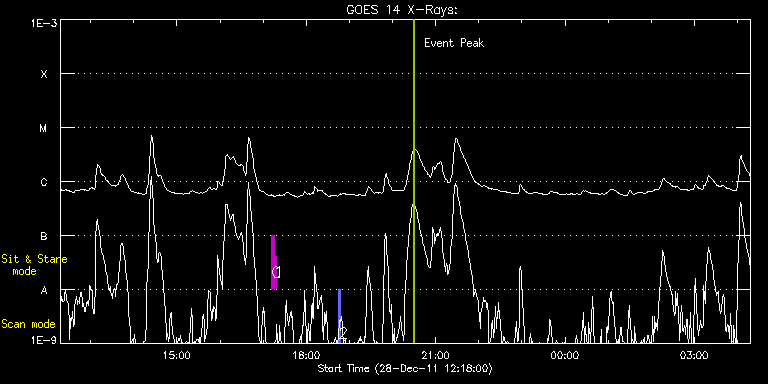 EIS Observation timeline overlay to GOES-Xray curve Code 1" 2" 40" 266" EIS Observations list for this event: STUDY ACRONYM ID DATE OBSERVED DESCRIPTION NOAA# TARGET 0 regcal071 | 25445 | 2011/12/28 17:11:41 | Dark exposures, CCD bottom rows (100s | | Engineering TIMELINE ID DATE OBSERVED FITS FILE XCEN (+W/-E) YCEN (+N/-S) DUR ----------------------------------------------------------------------------------------------------------------- 25445 | 2011/12/28 17:11:41.000 | eis_l0_20111228_171141.fits.gz | 831.41 | -659.68 | 3m22s 1 regcal072 | 25446 | 2011/12/28 17:15:30 | Dark exposures, top CCD rows (100s exp | | Engineering TIMELINE ID DATE OBSERVED FITS FILE XCEN (+W/-E) YCEN (+N/-S) DUR ----------------------------------------------------------------------------------------------------------------- 25446 | 2011/12/28 17:15:30.000 | eis_l0_20111228_171530.fits.gz | 831.64 | -148.76 | 3m21s 2 PRY_slot_contextLITE | 25443 | 2011/12/28 18:45:19 | Active Region Studies | 1380 | Active Region TIMELINE ID DATE OBSERVED FITS FILE XCEN (+W/-E) YCEN (+N/-S) DUR ----------------------------------------------------------------------------------------------------------------- 25443 | 2011/12/28 18:45:19.000 | eis_l0_20111228_184519.fits.gz | 807.17 | -355.14 | 2m56s : Check study information : Download file : View thumbnails For this event, also check for: