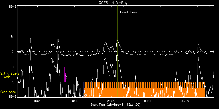 EIS Observation timeline overlay to GOES-Xray curve Code 1" 2" 40" 266" EIS Observations list for this event: STUDY ACRONYM ID DATE OBSERVED DESCRIPTION NOAA# TARGET 0 regcal071 | 25445 | 2011/12/28 17:11:41 | Dark exposures, CCD bottom rows (100s | | Engineering TIMELINE ID DATE OBSERVED FITS FILE XCEN (+W/-E) YCEN (+N/-S) DUR ----------------------------------------------------------------------------------------------------------------- 25445 | 2011/12/28 17:11:41.000 | eis_l0_20111228_171141.fits.gz | 831.41 | -659.68 | 3m22s 1 regcal072 | 25446 | 2011/12/28 17:15:30 | Dark exposures, top CCD rows (100s exp | | Engineering TIMELINE ID DATE OBSERVED FITS FILE XCEN (+W/-E) YCEN (+N/-S) DUR ----------------------------------------------------------------------------------------------------------------- 25446 | 2011/12/28 17:15:30.000 | eis_l0_20111228_171530.fits.gz | 831.64 | -148.76 | 3m21s 2 PRY_slot_contextLITE | 25443 | 2011/12/28 18:45:19 | Active Region Studies | 1380 | Active Region TIMELINE ID DATE OBSERVED FITS FILE XCEN (+W/-E) YCEN (+N/-S) DUR ----------------------------------------------------------------------------------------------------------------- 25443 | 2011/12/28 18:45:19.000 | eis_l0_20111228_184519.fits.gz | 807.17 | -355.14 | 2m56s 3 HH_Flare+AR_180x152 | 25444 | 2011/12/28 18:48:41 | Active Region Studies | 1387 | Flare TIMELINE ID DATE OBSERVED FITS FILE XCEN (+W/-E) YCEN (+N/-S) DUR ----------------------------------------------------------------------------------------------------------------- 25444 | 2011/12/28 18:48:41.000 | eis_l0_20111228_184841.fits.gz | 820.31 | -355.14 | 5m17s 25444 | 2011/12/28 18:54:01.000 | eis_l0_20111228_185401.fits.gz | 820.62 | -355.07 | 5m18s 25444 | 2011/12/28 18:59:21.000 | eis_l0_20111228_185921.fits.gz | 821.01 | -355.22 | 5m19s 25444 | 2011/12/28 19:04:42.000 | eis_l0_20111228_190442.fits.gz | 821.32 | -355.30 | 5m19s 25444 | 2011/12/28 19:10:03.000 | eis_l0_20111228_191003.fits.gz | 821.62 | -355.30 | 5m19s 25444 | 2011/12/28 19:15:24.000 | eis_l0_20111228_191524.fits.gz | 821.93 | -355.22 | 5m19s 25444 | 2011/12/28 19:20:46.000 | eis_l0_20111228_192046.fits.gz | 822.24 | -355.30 | 5m17s 25444 | 2011/12/28 19:26:05.000 | eis_l0_20111228_192605.fits.gz | 822.55 | -355.30 | 5m19s 25444 | 2011/12/28 19:31:27.000 | eis_l0_20111228_193127.fits.gz | 822.94 | -355.30 | 5m17s 25444 | 2011/12/28 19:36:47.000 | eis_l0_20111228_193647.fits.gz | 823.17 | -355.45 | 5m17s 25444 | 2011/12/28 19:42:07.000 | eis_l0_20111228_194207.fits.gz | 823.56 | -355.53 | 5m18s 25444 | 2011/12/28 19:47:28.000 | eis_l0_20111228_194728.fits.gz | 823.79 | -355.53 | 5m18s 25444 | 2011/12/28 19:52:49.000 | eis_l0_20111228_195249.fits.gz | 824.17 | -355.45 | 5m17s 25444 | 2011/12/28 19:58:09.000 | eis_l0_20111228_195809.fits.gz | 824.41 | -355.53 | 5m19s 25444 | 2011/12/28 20:03:31.000 | eis_l0_20111228_200331.fits.gz | 824.72 | -355.53 | 5m18s 25444 | 2011/12/28 20:08:52.000 | eis_l0_20111228_200852.fits.gz | 825.10 | -355.53 | 5m18s 25444 | 2011/12/28 20:14:13.000 | eis_l0_20111228_201413.fits.gz | 825.41 | -355.68 | 5m18s 25444 | 2011/12/28 20:19:34.000 | eis_l0_20111228_201934.fits.gz | 825.72 | -355.53 | 5m17s 25444 | 2011/12/28 20:24:54.000 | eis_l0_20111228_202454.fits.gz | 825.87 | -355.68 | 5m19s 25444 | 2011/12/28 20:30:15.000 | eis_l0_20111228_203015.fits.gz | 826.18 | -355.61 | 5m18s 25444 | 2011/12/28 20:35:36.000 | eis_l0_20111228_203536.fits.gz | 826.57 | -355.76 | 5m18s 25444 | 2011/12/28 20:40:57.000 | eis_l0_20111228_204057.fits.gz | 826.88 | -355.92 | 5m18s 25444 | 2011/12/28 20:46:18.000 | eis_l0_20111228_204618.fits.gz | 827.03 | -355.68 | 5m18s 25444 | 2011/12/28 20:51:38.000 | eis_l0_20111228_205138.fits.gz | 827.42 | -355.84 | 5m19s 25444 | 2011/12/28 20:57:00.000 | eis_l0_20111228_205700.fits.gz | 827.73 | -355.99 | 5m18s 25444 | 2011/12/28 21:02:21.000 | eis_l0_20111228_210221.fits.gz | 827.96 | -355.84 | 5m17s 25444 | 2011/12/28 21:07:41.000 | eis_l0_20111228_210741.fits.gz | 828.35 | -355.84 | 5m18s 25444 | 2011/12/28 21:13:02.000 | eis_l0_20111228_211302.fits.gz | 828.66 | -355.99 | 5m18s 25444 | 2011/12/28 21:18:23.000 | eis_l0_20111228_211823.fits.gz | 828.89 | -355.76 | 5m19s 25444 | 2011/12/28 21:23:44.000 | eis_l0_20111228_212344.fits.gz | 829.20 | -355.99 | 5m18s 25444 | 2011/12/28 21:29:05.000 | eis_l0_20111228_212905.fits.gz | 829.58 | -356.07 | 5m18s 25444 | 2011/12/28 21:34:25.000 | eis_l0_20111228_213425.fits.gz | 829.81 | -356.15 | 5m18s 25444 | 2011/12/28 21:39:46.000 | eis_l0_20111228_213946.fits.gz | 830.12 | -356.07 | 5m18s 25444 | 2011/12/28 21:45:07.000 | eis_l0_20111228_214507.fits.gz | 830.51 | -356.15 | 5m18s 25444 | 2011/12/28 21:50:28.000 | eis_l0_20111228_215028.fits.gz | 830.74 | -356.07 | 5m18s 25444 | 2011/12/28 21:55:48.000 | eis_l0_20111228_215548.fits.gz | 830.90 | -356.15 | 5m19s 25444 | 2011/12/28 22:01:09.000 | eis_l0_20111228_220109.fits.gz | 831.28 | -356.07 | 5m19s 25444 | 2011/12/28 22:06:30.000 | eis_l0_20111228_220630.fits.gz | 831.51 | -356.07 | 5m18s 25444 | 2011/12/28 22:11:51.000 | eis_l0_20111228_221151.fits.gz | 831.82 | -356.15 | 5m18s 25444 | 2011/12/28 22:17:11.000 | eis_l0_20111228_221711.fits.gz | 832.21 | -356.30 | 5m19s 25444 | 2011/12/28 22:22:33.000 | eis_l0_20111228_222233.fits.gz | 832.36 | -356.30 | 5m17s 25444 | 2011/12/28 22:27:53.000 | eis_l0_20111228_222753.fits.gz | 832.75 | -356.23 | 5m18s 25444 | 2011/12/28 22:33:14.000 | eis_l0_20111228_223314.fits.gz | 833.06 | -356.38 | 5m18s 25444 | 2011/12/28 22:38:35.000 | eis_l0_20111228_223835.fits.gz | 833.29 | -356.30 | 5m18s 25444 | 2011/12/28 22:43:56.000 | eis_l0_20111228_224356.fits.gz | 833.68 | -356.23 | 5m18s 25444 | 2011/12/28 22:49:17.000 | eis_l0_20111228_224917.fits.gz | 833.91 | -356.30 | 5m17s 25444 | 2011/12/28 22:54:37.000 | eis_l0_20111228_225437.fits.gz | 834.14 | -356.38 | 5m17s 25444 | 2011/12/28 22:59:57.000 | eis_l0_20111228_225957.fits.gz | 834.45 | -356.38 | 5m17s 25444 | 2011/12/28 23:05:17.000 | 