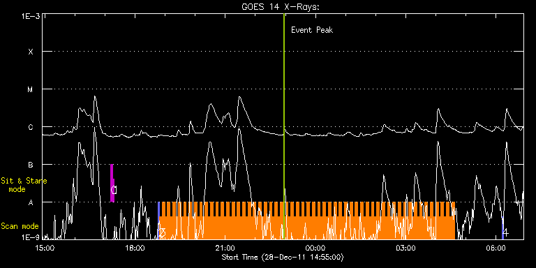 EIS Observation timeline overlay to GOES-Xray curve Code 1" 2" 40" 266" EIS Observations list for this event: STUDY ACRONYM ID DATE OBSERVED DESCRIPTION NOAA# TARGET 0 regcal071 | 25445 | 2011/12/28 17:11:41 | Dark exposures, CCD bottom rows (100s | | Engineering TIMELINE ID DATE OBSERVED FITS FILE XCEN (+W/-E) YCEN (+N/-S) DUR ----------------------------------------------------------------------------------------------------------------- 25445 | 2011/12/28 17:11:41.000 | eis_l0_20111228_171141.fits.gz | 831.41 | -659.68 | 3m22s 1 regcal072 | 25446 | 2011/12/28 17:15:30 | Dark exposures, top CCD rows (100s exp | | Engineering TIMELINE ID DATE OBSERVED FITS FILE XCEN (+W/-E) YCEN (+N/-S) DUR ----------------------------------------------------------------------------------------------------------------- 25446 | 2011/12/28 17:15:30.000 | eis_l0_20111228_171530.fits.gz | 831.64 | -148.76 | 3m21s 2 PRY_slot_contextLITE | 25443 | 2011/12/28 18:45:19 | Active Region Studies | 1380 | Active Region TIMELINE ID DATE OBSERVED FITS FILE XCEN (+W/-E) YCEN (+N/-S) DUR ----------------------------------------------------------------------------------------------------------------- 25443 | 2011/12/28 18:45:19.000 | eis_l0_20111228_184519.fits.gz | 807.17 | -355.14 | 2m56s 3 HH_Flare+AR_180x152 | 25444 | 2011/12/28 18:48:41 | Active Region Studies | 1387 | Flare TIMELINE ID DATE OBSERVED FITS FILE XCEN (+W/-E) YCEN (+N/-S) DUR ----------------------------------------------------------------------------------------------------------------- 25444 | 2011/12/28 18:48:41.000 | eis_l0_20111228_184841.fits.gz | 820.31 | -355.14 | 5m17s 25444 | 2011/12/28 18:54:01.000 | eis_l0_20111228_185401.fits.gz | 820.62 | -355.07 | 5m18s 25444 | 2011/12/28 18:59:21.000 | eis_l0_20111228_185921.fits.gz | 821.01 | -355.22 | 5m19s 25444 | 2011/12/28 19:04:42.000 | eis_l0_20111228_190442.fits.gz | 821.32 | -355.30 | 5m19s 25444 | 2011/12/28 19:10:03.000 | eis_l0_20111228_191003.fits.gz | 821.62 | -355.30 | 5m19s 25444 | 2011/12/28 19:15:24.000 | eis_l0_20111228_191524.fits.gz | 821.93 | -355.22 | 5m19s 25444 | 2011/12/28 19:20:46.000 | eis_l0_20111228_192046.fits.gz | 822.24 | -355.30 | 5m17s 25444 | 2011/12/28 19:26:05.000 | eis_l0_20111228_192605.fits.gz | 822.55 | -355.30 | 5m19s 25444 | 2011/12/28 19:31:27.000 | eis_l0_20111228_193127.fits.gz | 822.94 | -355.30 | 5m17s 25444 | 2011/12/28 19:36:47.000 | eis_l0_20111228_193647.fits.gz | 823.17 | -355.45 | 5m17s 25444 | 2011/12/28 19:42:07.000 | eis_l0_20111228_194207.fits.gz | 823.56 | -355.53 | 5m18s 25444 | 2011/12/28 19:47:28.000 | eis_l0_20111228_194728.fits.gz | 823.79 | -355.53 | 5m18s 25444 | 2011/12/28 19:52:49.000 | eis_l0_20111228_195249.fits.gz | 824.17 | -355.45 | 5m17s 25444 | 2011/12/28 19:58:09.000 | eis_l0_20111228_195809.fits.gz | 824.41 | -355.53 | 5m19s 25444 | 2011/12/28 20:03:31.000 | eis_l0_20111228_200331.fits.gz | 824.72 | -355.53 | 5m18s 25444 | 2011/12/28 20:08:52.000 | eis_l0_20111228_200852.fits.gz | 825.10 | -355.53 | 5m18s 25444 | 2011/12/28 20:14:13.000 | eis_l0_20111228_201413.fits.gz | 825.41 | -355.68 | 5m18s 25444 | 2011/12/28 20:19:34.000 | eis_l0_20111228_201934.fits.gz | 825.72 | -355.53 | 5m17s 25444 | 2011/12/28 20:24:54.000 | eis_l0_20111228_202454.fits.gz | 825.87 | -355.68 | 5m19s 25444 | 2011/12/28 20:30:15.000 | eis_l0_20111228_203015.fits.gz | 826.18 | -355.61 | 5m18s 25444 | 2011/12/28 20:35:36.000 | eis_l0_20111228_203536.fits.gz | 826.57 | -355.76 | 5m18s 25444 | 2011/12/28 20:40:57.000 | eis_l0_20111228_204057.fits.gz | 826.88 | -355.92 | 5m18s 25444 | 2011/12/28 20:46:18.000 | eis_l0_20111228_204618.fits.gz | 827.03 | -355.68 | 5m18s 25444 | 2011/12/28 20:51:38.000 | eis_l0_20111228_205138.fits.gz | 827.42 | -355.84 | 5m19s 25444 | 2011/12/28 20:57:00.000 | eis_l0_20111228_205700.fits.gz | 827.73 | -355.99 | 5m18s 25444 | 2011/12/28 21:02:21.000 | eis_l0_20111228_210221.fits.gz | 827.96 | -355.84 | 5m17s 25444 | 2011/12/28 21:07:41.000 | eis_l0_20111228_210741.fits.gz | 828.35 | -355.84 | 5m18s 25444 | 2011/12/28 21:13:02.000 | eis_l0_20111228_211302.fits.gz | 828.66 | -355.99 | 5m18s 25444 | 2011/12/28 21:18:23.000 | eis_l0_20111228_211823.fits.gz | 828.89 | -355.76 | 5m19s 25444 | 2011/12/28 21:23:44.000 | eis_l0_20111228_212344.fits.gz | 829.20 | -355.99 | 5m18s 25444 | 2011/12/28 21:29:05.000 | eis_l0_20111228_212905.fits.gz | 829.58 | -356.07 | 5m18s 25444 | 2011/12/28 21:34:25.000 | eis_l0_20111228_213425.fits.gz | 829.81 | -356.15 | 5m18s 25444 | 2011/12/28 21:39:46.000 | eis_l0_20111228_213946.fits.gz | 830.12 | -356.07 | 5m18s 25444 | 2011/12/28 21:45:07.000 | eis_l0_20111228_214507.fits.gz | 830.51 | -356.15 | 5m18s 25444 | 2011/12/28 21:50:28.000 | eis_l0_20111228_215028.fits.gz | 830.74 | -356.07 | 5m18s 25444 | 2011/12/28 21:55:48.000 | eis_l0_20111228_215548.fits.gz | 830.90 | -356.15 | 5m19s 25444 | 2011/12/28 22:01:09.000 | eis_l0_20111228_220109.fits.gz | 831.28 | -356.07 | 5m19s 25444 | 2011/12/28 22:06:30.000 | eis_l0_20111228_220630.fits.gz | 831.51 | -356.07 | 5m18s 25444 | 2011/12/28 22:11:51.000 | eis_l0_20111228_221151.fits.gz | 831.82 | -356.15 | 5m18s 25444 | 2011/12/28 22:17:11.000 | eis_l0_20111228_221711.fits.gz | 832.21 | -356.30 | 5m19s 25444 | 2011/12/28 22:22:33.000 | eis_l0_20111228_222233.fits.gz | 832.36 | -356.30 | 5m17s 25444 | 2011/12/28 22:27:53.000 | eis_l0_20111228_222753.fits.gz | 832.75 | -356.23 | 5m18s 25444 | 2011/12/28 22:33:14.000 | eis_l0_20111228_223314.fits.gz | 833.06 | -356.38 | 5m18s 25444 | 2011/12/28 22:38:35.000 | eis_l0_20111228_223835.fits.gz | 833.29 | -356.30 | 5m18s 25444 | 2011/12/28 22:43:56.000 | eis_l0_20111228_224356.fits.gz | 833.68 | -356.23 | 5m18s 25444 | 2011/12/28 22:49:17.000 | eis_l0_20111228_224917.fits.gz | 833.91 | -356.30 | 5m17s 25444 | 2011/12/28 22:54:37.000 | eis_l0_20111228_225437.fits.gz | 834.14 | -356.38 | 5m17s 25444 | 2011/12/28 22:59:57.000 | eis_l0_20111228_225957.fits.gz | 834.45 | -356.38 | 5m17s 25444 | 2011/12/28 23:05:17.000 | 