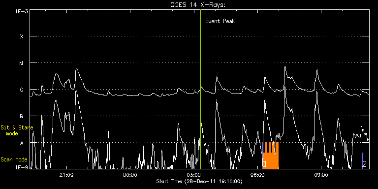 EIS Observation timeline overlay to GOES-Xray curve Code 1" 2" 40" 266" EIS Observations list for this event: STUDY ACRONYM ID DATE OBSERVED DESCRIPTION NOAA# TARGET 0 PRY_slot_contextLITE | 25447 | 2011/12/29 06:12:19 | Active Region Studies | 1387 | Active Region TIMELINE ID DATE OBSERVED FITS FILE XCEN (+W/-E) YCEN (+N/-S) DUR ----------------------------------------------------------------------------------------------------------------- 25447 | 2011/12/29 06:12:19.000 | eis_l0_20111229_061219.fits.gz | 842.70 | -358.93 | 2m56s 1 HH_Flare+AR_180x152 | 25448 | 2011/12/29 06:15:41 | Active Region Studies | 1387 | Flare TIMELINE ID DATE OBSERVED FITS FILE XCEN (+W/-E) YCEN (+N/-S) DUR ----------------------------------------------------------------------------------------------------------------- 25448 | 2011/12/29 06:15:41.000 | eis_l0_20111229_061541.fits.gz | 855.85 | -358.85 | 5m18s 25448 | 2011/12/29 06:21:02.000 | eis_l0_20111229_062102.fits.gz | 855.92 | -358.62 | 5m17s 25448 | 2011/12/29 06:26:22.000 | eis_l0_20111229_062622.fits.gz | 856.16 | -358.77 | 5m17s 25448 | 2011/12/29 06:31:42.000 | eis_l0_20111229_063142.fits.gz | 856.46 | -358.70 | 5m18s 25448 | 2011/12/29 06:37:02.000 | eis_l0_20111229_063702.fits.gz | 856.70 | -358.85 | 5m19s 25448 | 2011/12/29 06:42:23.000 | eis_l0_20111229_064223.fits.gz | 856.93 | -358.85 | 5m19s 25448 | 2011/12/29 06:47:45.000 | eis_l0_20111229_064745.fits.gz | 857.16 | -358.85 | 5m18s 25448 | 2011/12/29 06:53:06.000 | eis_l0_20111229_065306.fits.gz | 857.39 | -358.85 | 5m17s 2 PRY_slot_contextLITE | 25492 | 2011/12/29 10:55:21 | Plage observation - Hara | 1386 | Active Region TIMELINE ID DATE OBSERVED FITS FILE XCEN (+W/-E) YCEN (+N/-S) DUR ----------------------------------------------------------------------------------------------------------------- 25492 | 2011/12/29 10:55:21.000 | eis_l0_20111229_105521.fits.gz | -205.24 | -299.60 | 2m56s : Check study information : Download file : View thumbnails For this event, also check for: