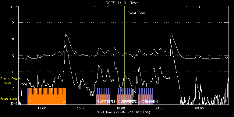 EIS Observation timeline overlay to GOES-Xray curve Code 1" 2" 40" 266" EIS Observations list for this event: STUDY ACRONYM ID DATE OBSERVED DESCRIPTION NOAA# TARGET 0 PRY_slot_contextLITE | 25492 | 2011/12/29 10:55:21 | Plage observation - Hara | 1386 | Active Region TIMELINE ID DATE OBSERVED FITS FILE XCEN (+W/-E) YCEN (+N/-S) DUR ----------------------------------------------------------------------------------------------------------------- 25492 | 2011/12/29 10:55:21.000 | eis_l0_20111229_105521.fits.gz | -205.24 | -299.60 | 2m56s 1 HH_Flare_180x152f | 25493 | 2011/12/29 10:58:42 | Plage observation - Hara | 1386 | Flare TIMELINE ID DATE OBSERVED FITS FILE XCEN (+W/-E) YCEN (+N/-S) DUR ----------------------------------------------------------------------------------------------------------------- 25493 | 2011/12/29 10:58:42.000 | eis_l0_20111229_105842.fits.gz | -191.79 | -299.60 | 2m47s 25493 | 2011/12/29 11:01:32.000 | eis_l0_20111229_110132.fits.gz | -191.32 | -299.68 | 2m47s 25493 | 2011/12/29 11:04:22.000 | eis_l0_20111229_110422.fits.gz | -190.86 | -299.53 | 2m47s 25493 | 2011/12/29 11:07:12.000 | eis_l0_20111229_110712.fits.gz | -190.47 | -299.53 | 2m48s 25493 | 2011/12/29 11:10:02.000 | eis_l0_20111229_111002.fits.gz | -190.09 | -299.53 | 2m48s 25493 | 2011/12/29 11:12:53.000 | eis_l0_20111229_111253.fits.gz | -189.70 | -299.68 | 2m48s 25493 | 2011/12/29 11:15:43.000 | eis_l0_20111229_111543.fits.gz | -189.31 | -299.53 | 2m47s 25493 | 2011/12/29 11:18:33.000 | eis_l0_20111229_111833.fits.gz | -189.01 | -299.60 | 2m48s 25493 | 2011/12/29 11:21:23.000 | eis_l0_20111229_112123.fits.gz | -188.46 | -299.76 | 2m48s 25493 | 2011/12/29 11:24:14.000 | eis_l0_20111229_112414.fits.gz | -188.08 | -299.53 | 2m48s 25493 | 2011/12/29 11:27:05.000 | eis_l0_20111229_112705.fits.gz | -187.69 | -299.53 | 2m48s 25493 | 2011/12/29 11:29:55.000 | eis_l0_20111229_112955.fits.gz | -187.31 | -299.60 | 2m48s 25493 | 2011/12/29 11:32:46.000 | eis_l0_20111229_113246.fits.gz | -186.92 | -299.53 | 2m47s 25493 | 2011/12/29 11:35:36.000 | eis_l0_20111229_113536.fits.gz | -186.53 | -299.53 | 2m47s 25493 | 2011/12/29 11:38:26.000 | eis_l0_20111229_113826.fits.gz | -186.07 | -299.53 | 2m47s 25493 | 2011/12/29 11:41:16.000 | eis_l0_20111229_114116.fits.gz | -185.68 | -299.45 | 2m48s 25493 | 2011/12/29 11:44:06.000 | eis_l0_20111229_114406.fits.gz | -185.22 | -299.60 | 2m47s 25493 | 2011/12/29 11:46:56.000 | eis_l0_20111229_114656.fits.gz | -184.83 | -299.53 | 2m48s 25493 | 2011/12/29 11:49:47.000 | eis_l0_20111229_114947.fits.gz | -184.45 | -299.37 | 2m47s 25493 | 2011/12/29 11:52:36.000 | eis_l0_20111229_115236.fits.gz | -184.14 | -299.37 | 2m48s 25493 | 2011/12/29 11:55:27.000 | eis_l0_20111229_115527.fits.gz | -183.68 | -299.45 | 2m48s 25493 | 2011/12/29 11:58:18.000 | eis_l0_20111229_115818.fits.gz | -183.21 | -299.53 | 2m48s 25493 | 2011/12/29 12:01:09.000 | eis_l0_20111229_120109.fits.gz | -182.90 | -299.45 | 2m47s 25493 | 2011/12/29 12:03:59.000 | eis_l0_20111229_120359.fits.gz | -182.52 | -299.45 | 2m47s 25493 | 2011/12/29 12:06:49.000 | eis_l0_20111229_120649.fits.gz | -182.05 | -299.37 | 2m47s 25493 | 2011/12/29 12:09:39.000 | eis_l0_20111229_120939.fits.gz | -181.59 | -299.37 | 2m48s 25493 | 2011/12/29 12:12:30.000 | eis_l0_20111229_121230.fits.gz | -181.28 | -299.37 | 2m47s 25493 | 2011/12/29 12:15:20.000 | eis_l0_20111229_121520.fits.gz | -180.82 | -299.29 | 2m49s 25493 | 2011/12/29 12:18:11.000 | eis_l0_20111229_121811.fits.gz | -180.43 | -299.29 | 2m49s 25493 | 2011/12/29 12:21:03.000 | eis_l0_20111229_122103.fits.gz | -180.04 | -299.29 | 2m48s 25493 | 2011/12/29 12:23:54.000 | eis_l0_20111229_122354.fits.gz | -179.58 | -299.29 | 2m47s 25493 | 2011/12/29 12:26:44.000 | eis_l0_20111229_122644.fits.gz | -179.20 | -299.37 | 2m48s 25493 | 2011/12/29 12:29:34.000 | eis_l0_20111229_122934.fits.gz | -178.73 | -299.37 | 2m48s 25493 | 2011/12/29 12:32:25.000 | eis_l0_20111229_123225.fits.gz | -178.35 | -299.37 | 2m47s 25493 | 2011/12/29 12:35:15.000 | eis_l0_20111229_123515.fits.gz | -177.96 | -299.29 | 2m48s 25493 | 2011/12/29 12:38:06.000 | eis_l0_20111229_123806.fits.gz | -177.49 | -299.29 | 2m48s 25493 | 2011/12/29 12:40:57.000 | eis_l0_20111229_124057.fits.gz | -177.19 | -299.29 | 2m47s 25493 | 2011/12/29 12:43:47.000 | eis_l0_20111229_124347.fits.gz | -176.80 | -299.22 | 2m47s 25493 | 2011/12/29 12:46:37.000 | eis_l0_20111229_124637.fits.gz | -176.34 | -299.29 | 2m48s 25493 | 2011/12/29 12:49:28.000 | eis_l0_20111229_124928.fits.gz | -175.95 | -299.37 | 2m47s 25493 | 2011/12/29 12:52:18.000 | eis_l0_20111229_125218.fits.gz | -175.64 | -299.22 | 2m47s 25493 | 2011/12/29 12:55:08.000 | eis_l0_20111229_125508.fits.gz | -175.18 | -299.22 | 2m48s 25493 | 2011/12/29 12:57:58.000 | eis_l0_20111229_125758.fits.gz | -174.71 | -299.29 | 2m48s 25493 | 2011/12/29 13:00:48.000 | eis_l0_20111229_130048.fits.gz | -174.41 | -299.22 | 2m48s 25493 | 2011/12/29 13:03:39.000 | eis_l0_20111229_130339.fits.gz | -173.87 | -299.37 | 2m48s 25493 | 2011/12/29 13:06:30.000 | eis_l0_20111229_130630.fits.gz | -173.56 | -299.29 | 2m47s 25493 | 2011/12/29 13:09:20.000 | eis_l0_20111229_130920.fits.gz | -173.17 | -299.14 | 2m48s 25493 | 2011/12/29 13:12:11.000 | eis_l0_20111229_131211.fits.gz | -172.71 | -299.29 | 2m47s 25493 | 2011/12/29 13:15:01.000 | eis_l0_20111229_131501.fits.gz | -172.32 | -299.29 | 2m48s 25493 | 2011/12/29 13:17:52.000 | eis_l0_20111229_131752.fits.gz | -171.78 | -299.37 | 2m47s 25493 | 2011/12/29 13:20:42.000 | eis_l0_20111229_132042.fits.gz | -171.47 | -299.22 | 2m48s 25493 | 2011/12/29 13:23:33.000 | eis_l0_20111229_132333.fits.gz | -171.08 | -299.22 | 2m49s 25493 | 2011/12/29 13:26:24.000 | eis_l0_20111229_132624.fits.gz | -170.70 | -299.22 | 2m48s 25493 | 2011/12/29 13:29:15.000 | eis_l0_20111229_132915.fits.gz | -170.23 | -299.14 | 2m48s 25493 | 2011/12/29 13:32:06.000 | eis_l0_20111229_133206.fits.gz | -169.93 | -299.22 | 2m48s 2 HH_AR+FLR_RAS_N03 | 25494 | 2011/12/29 13:34:58 | Plage observation -