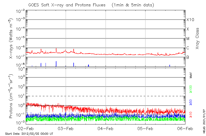 This page provides light-curves generated from GOES soft X-ray and Particle data for the date indicated at the top and the preceding three days.