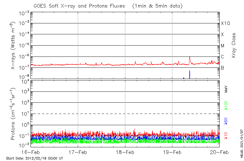 This page provides light-curves generated from GOES soft X-ray and Particle data for the date indicated at the top and the preceding three days.