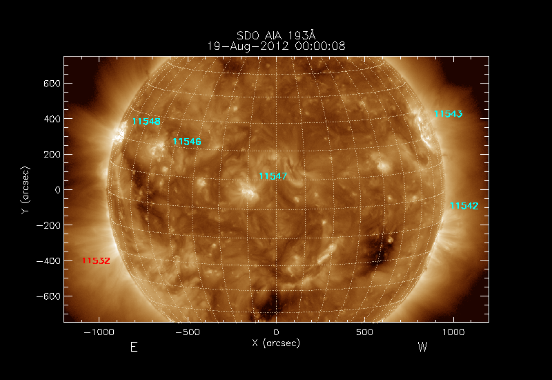 The numbers in turquoise designate Active Regions;