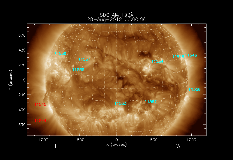 The 5 digit numbers in turquoise designate Active Regions;