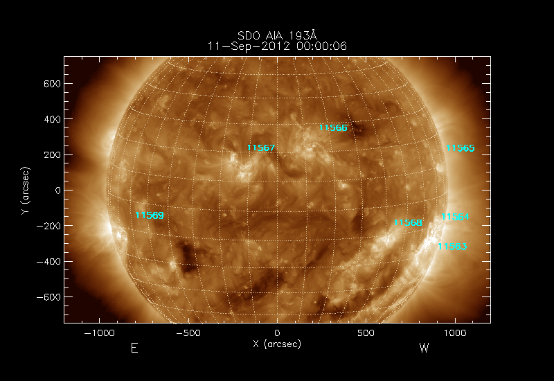 The 5 digit numbers in turquoise designate Active Regions;