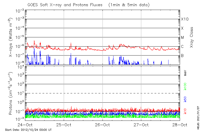 This page provides light-curves generated from GOES soft X-ray and Particle data for the date indicated at the top and the preceding three days.