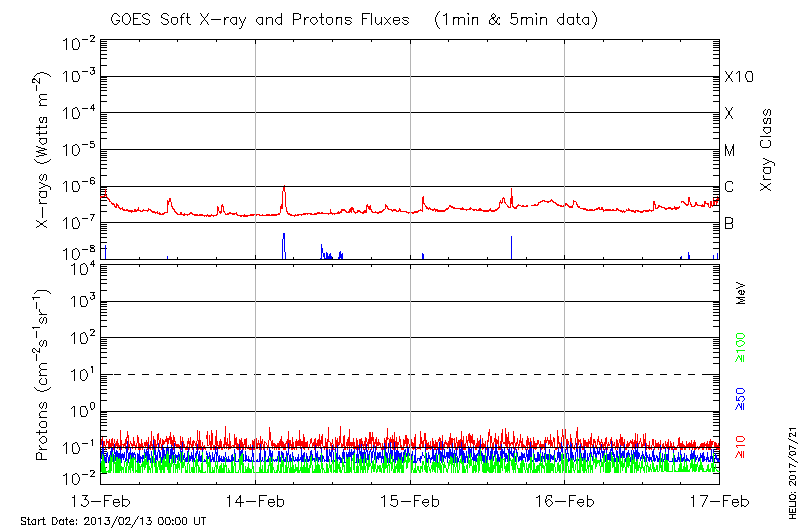 This page provides light-curves generated from GOES soft X-ray and Particle data for the date indicated at the top and the preceding three days.