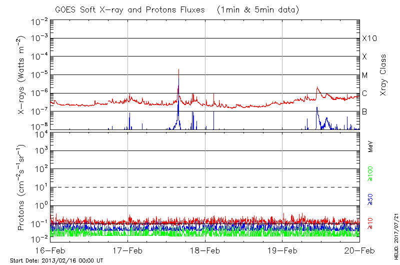 This page provides light-curves generated from GOES soft X-ray and Particle data for the date indicated at the top and the preceding three days.