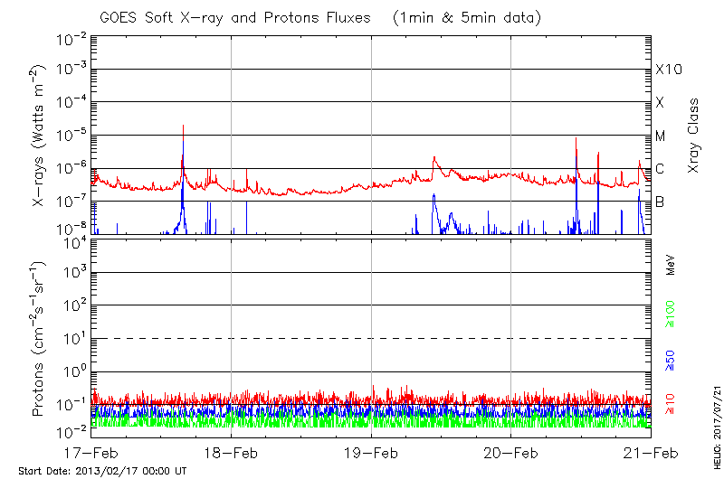 This page provides light-curves generated from GOES soft X-ray and Particle data for the date indicated at the top and the preceding three days.