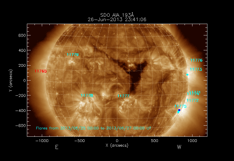 Note that some types of solar emission are more likely to be geo-effective if they originate from the western half to the disk