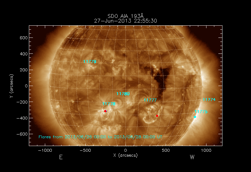 The numbers in turquoise designate Active Regions;