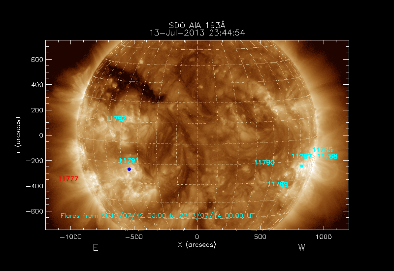 The numbers in turquoise designate Active Regions;