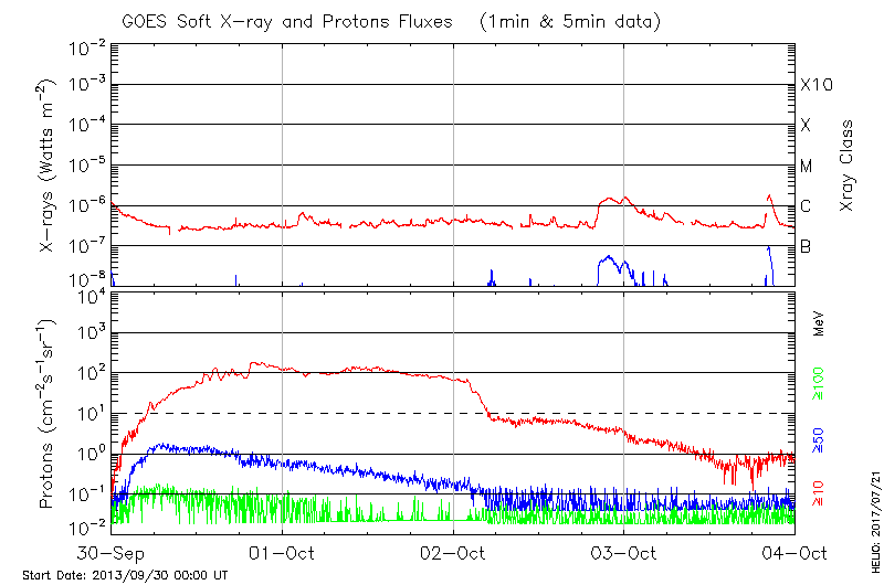 This page provides light-curves generated from GOES soft X-ray and Particle data for the date indicated at the top and the preceding three days.