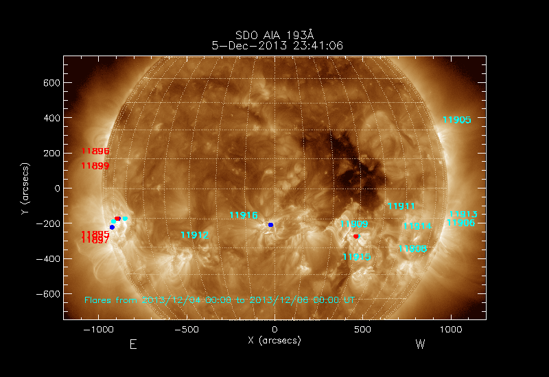 The 5 digit numbers in turquoise designate Active Regions;