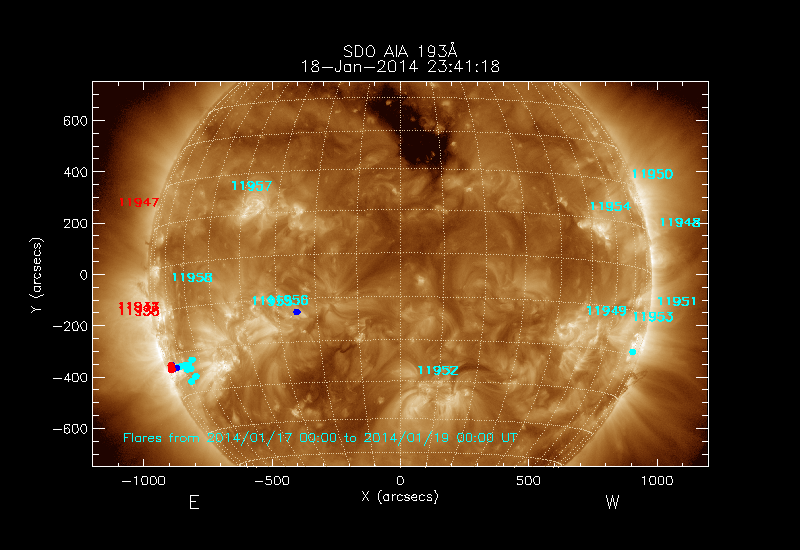 The numbers in turquoise designate Active Regions;