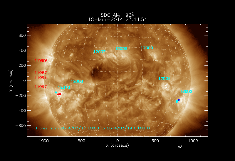 (Note that the error associated with the longitude assigned for flares observed on/near the east limb is greater than