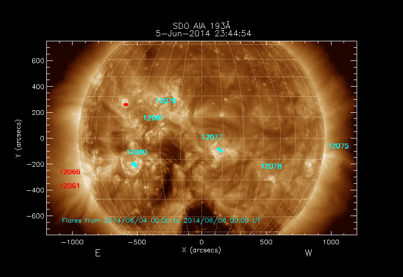 The 5 digit numbers in turquoise designate Active Regions;