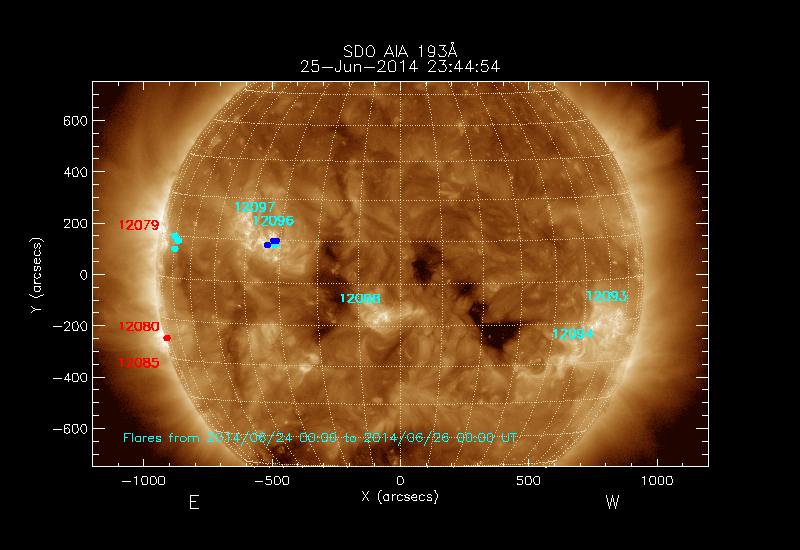 The numbers in turquoise designate Active Regions;