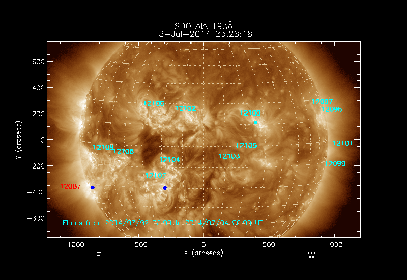 Note that some types of solar emission are more likely to be geo-effective if they originate from the western half to the disk