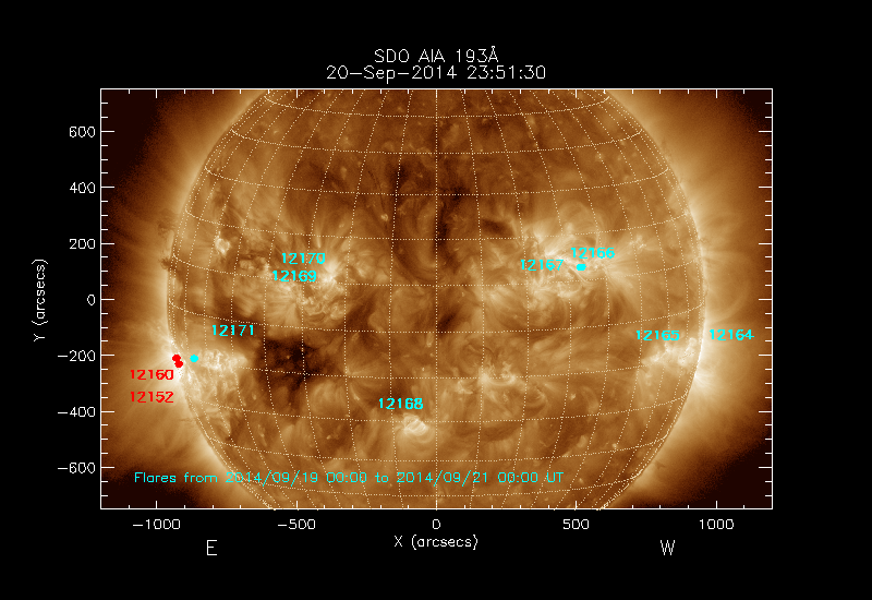 The numbers in turquoise designate Active Regions;