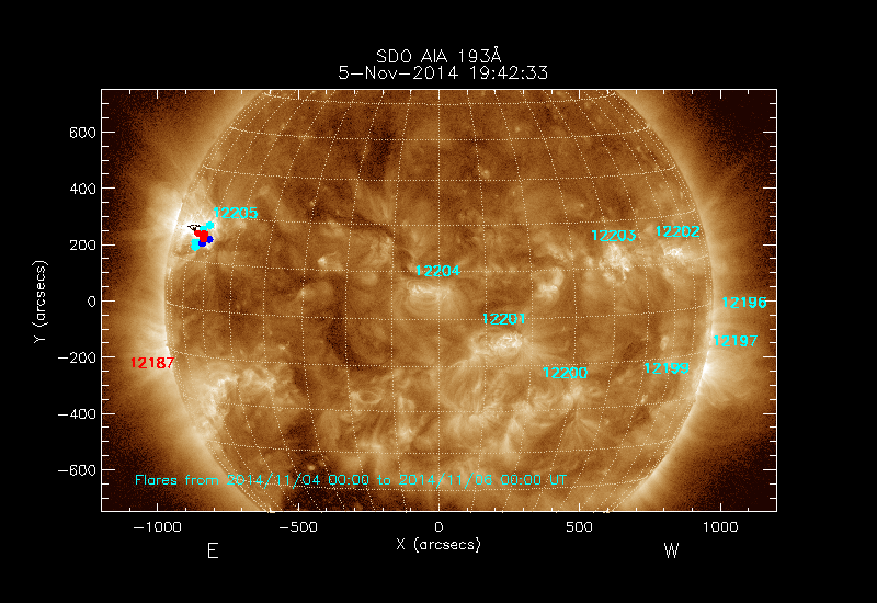 The 5 digit numbers in turquoise designate Active Regions;