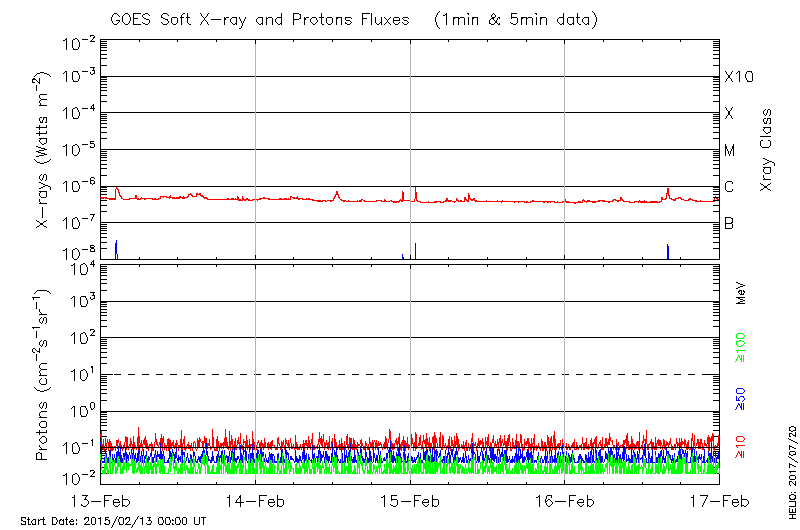 This page provides light-curves generated from GOES soft X-ray and Particle data for the date indicated at the top and the preceding three days.