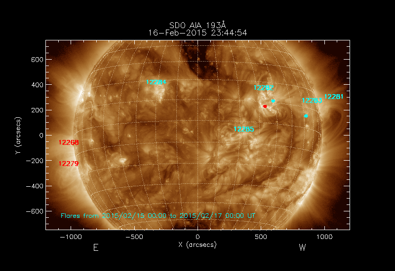 Note that some types of solar emission are more likely to be geo-effective if they originate from the western half to the disk