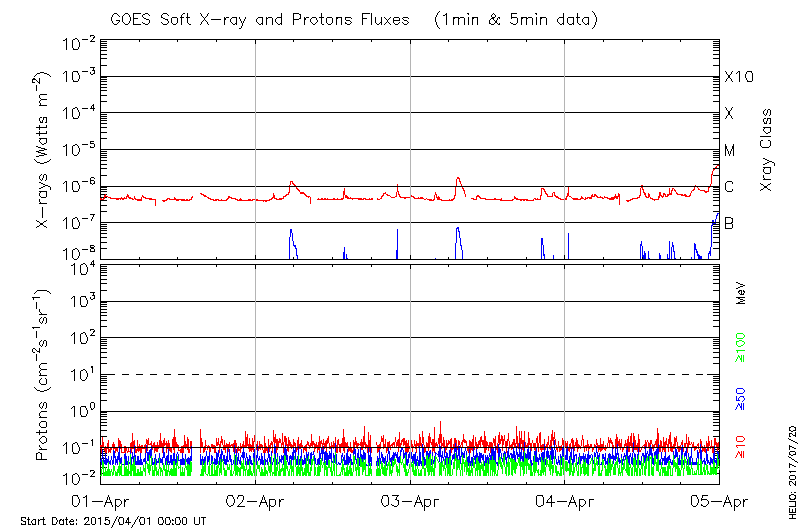 This page provides light-curves generated from GOES soft X-ray and Particle data for the date indicated at the top and the preceding three days.