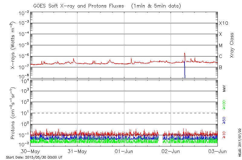 This page provides light-curves generated from GOES soft X-ray and Particle data for the date indicated at the top and the preceding three days.