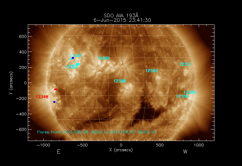 Note that some types of solar emission are more likely to be geo-effective if they originate from the western half to the disk