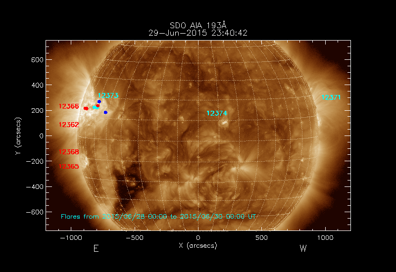 Note that some types of solar emission are more likely to be geo-effective if they originate from the western half to the disk